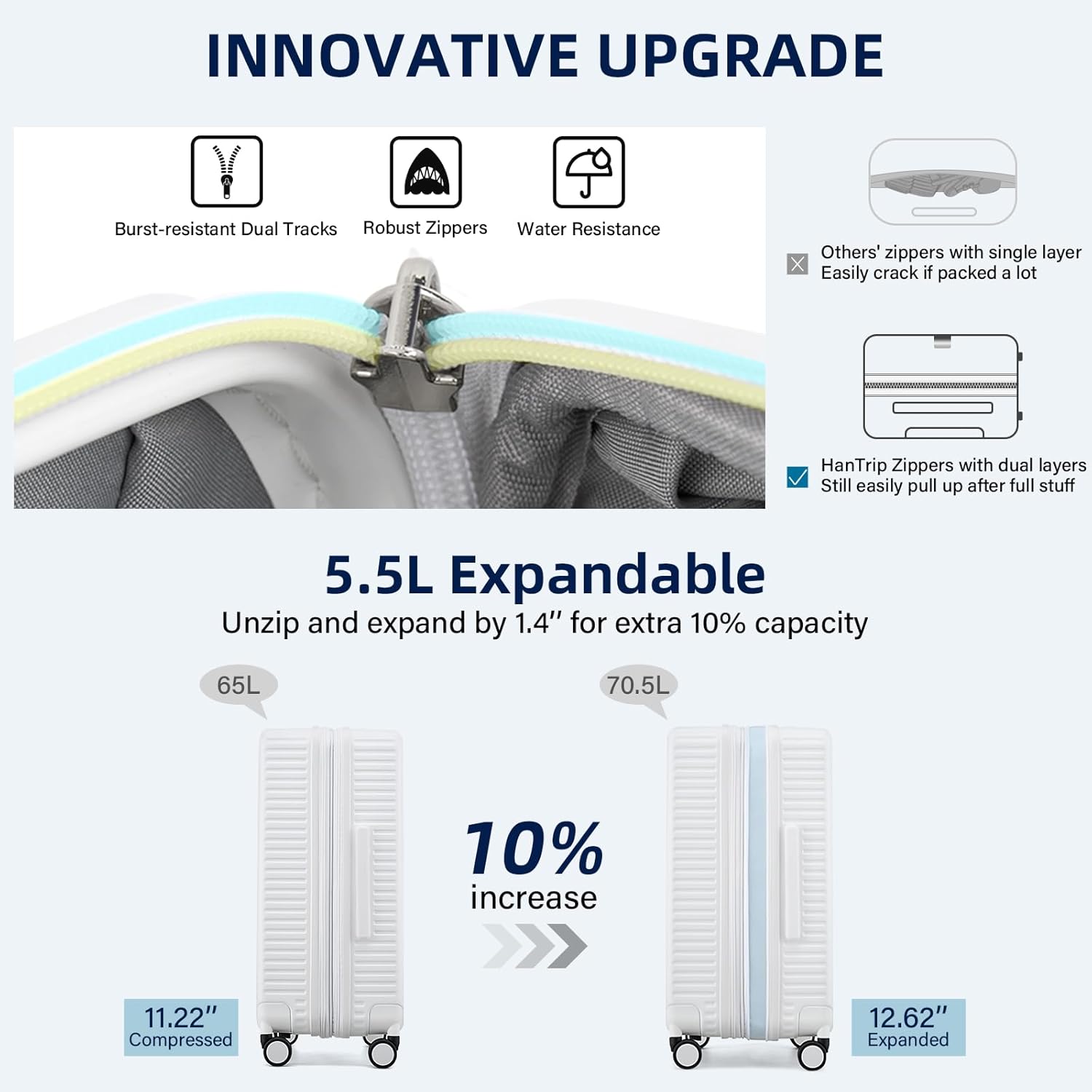Hard Shell Suitcases Travel Expandable Luggage, 24 Inch Check in Luggage with Spinner Wheels Cup Holder Charger Built in, Checked Medium Suitcase Lightweight Suitcases, White
