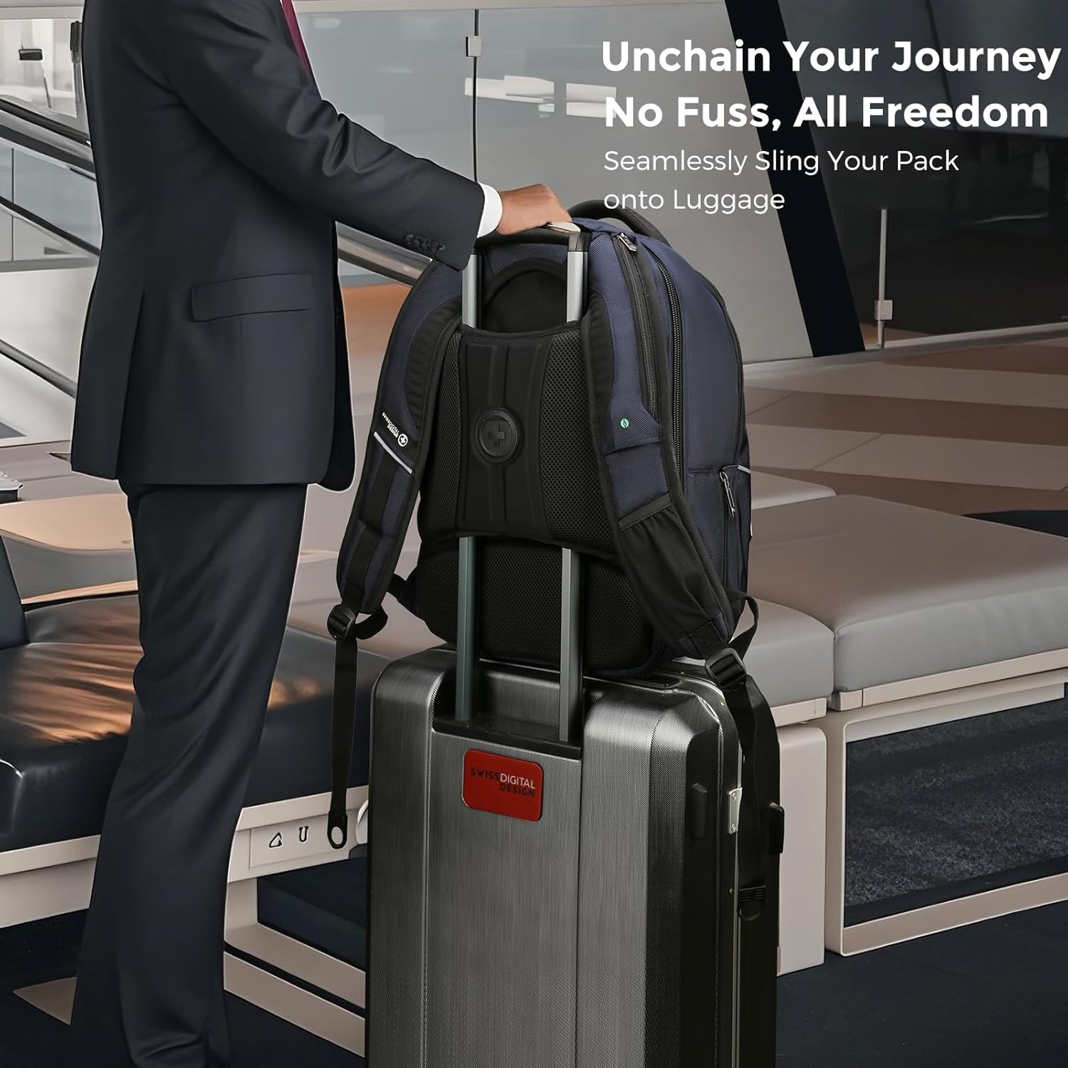 Swissdigital Design TSA Business Laptop Backpack For Men,Travel Backpack With USB Charging Port,College Tech Backpacks With RFID Pockets Presents For Men Fits 15.6 Inch Computer Blue | TERABYTE