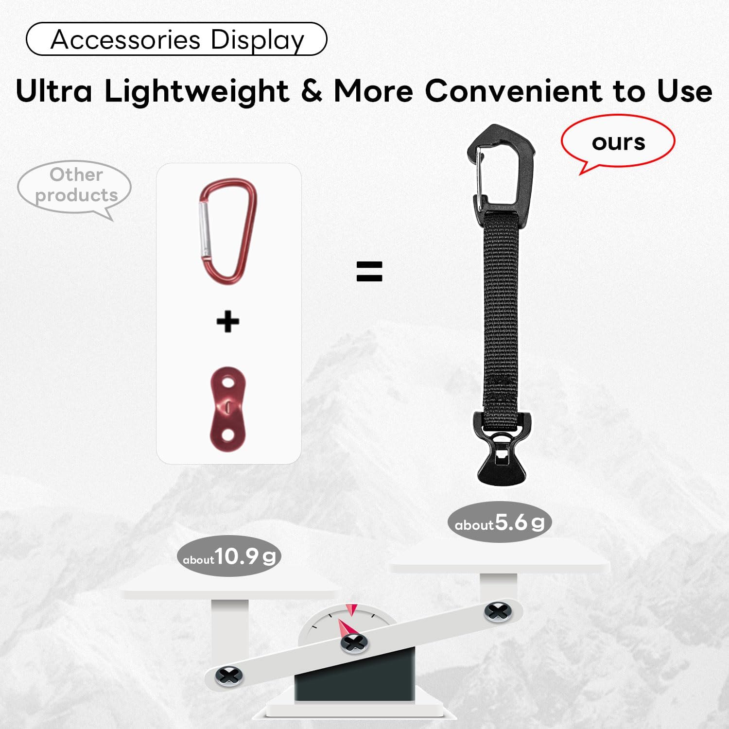 - 【Locking Carabiner Clip】Each tarp rope has an locking carabiner clip which can adjust the guy line's length according to your needs. Very easy to use, light-weight and compact