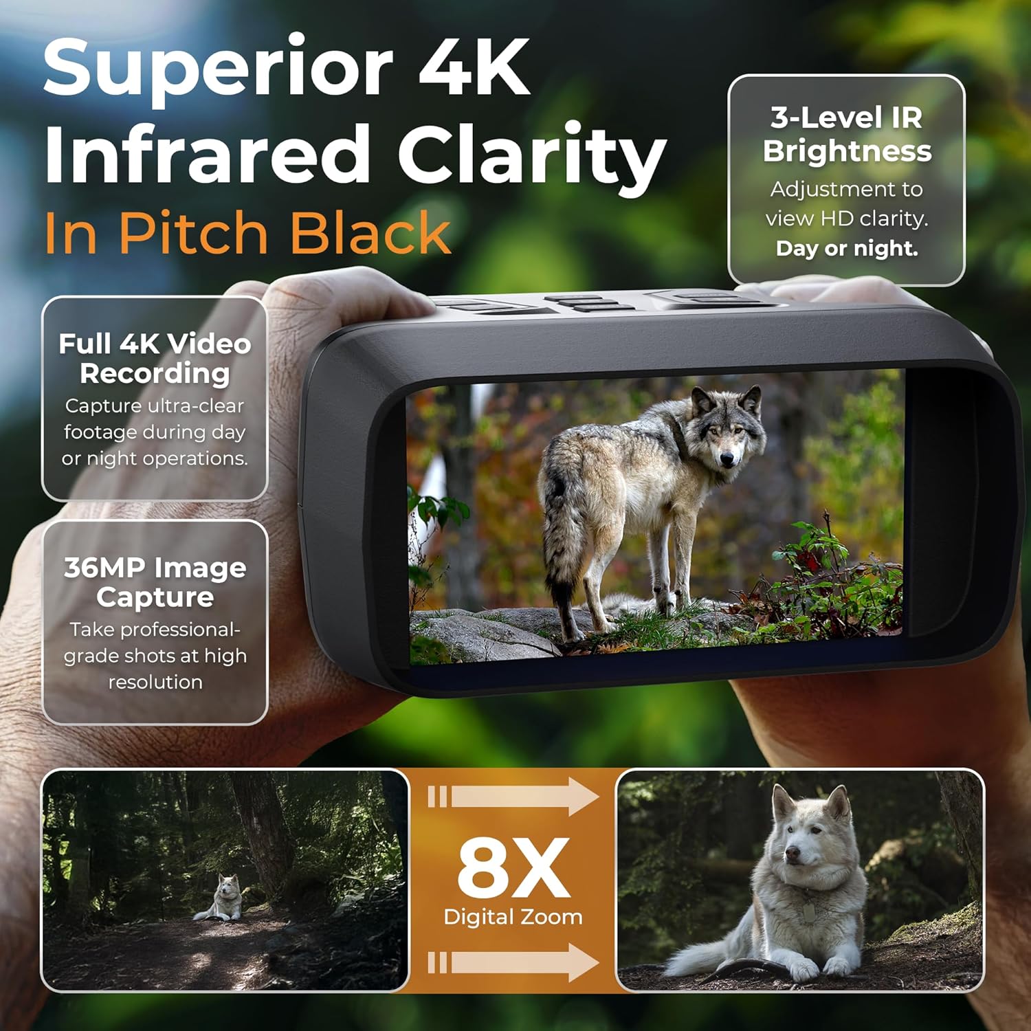 - LIGHT UP EVERY NIGHT MOMENT with Summit Horizon's Infrared Binoculars Night Vision. This night vision goggles for adults have 4K quality that records every scene & its 36MP photo keeps every detail, so you can simply relive your adventures with cinematic sharpness
