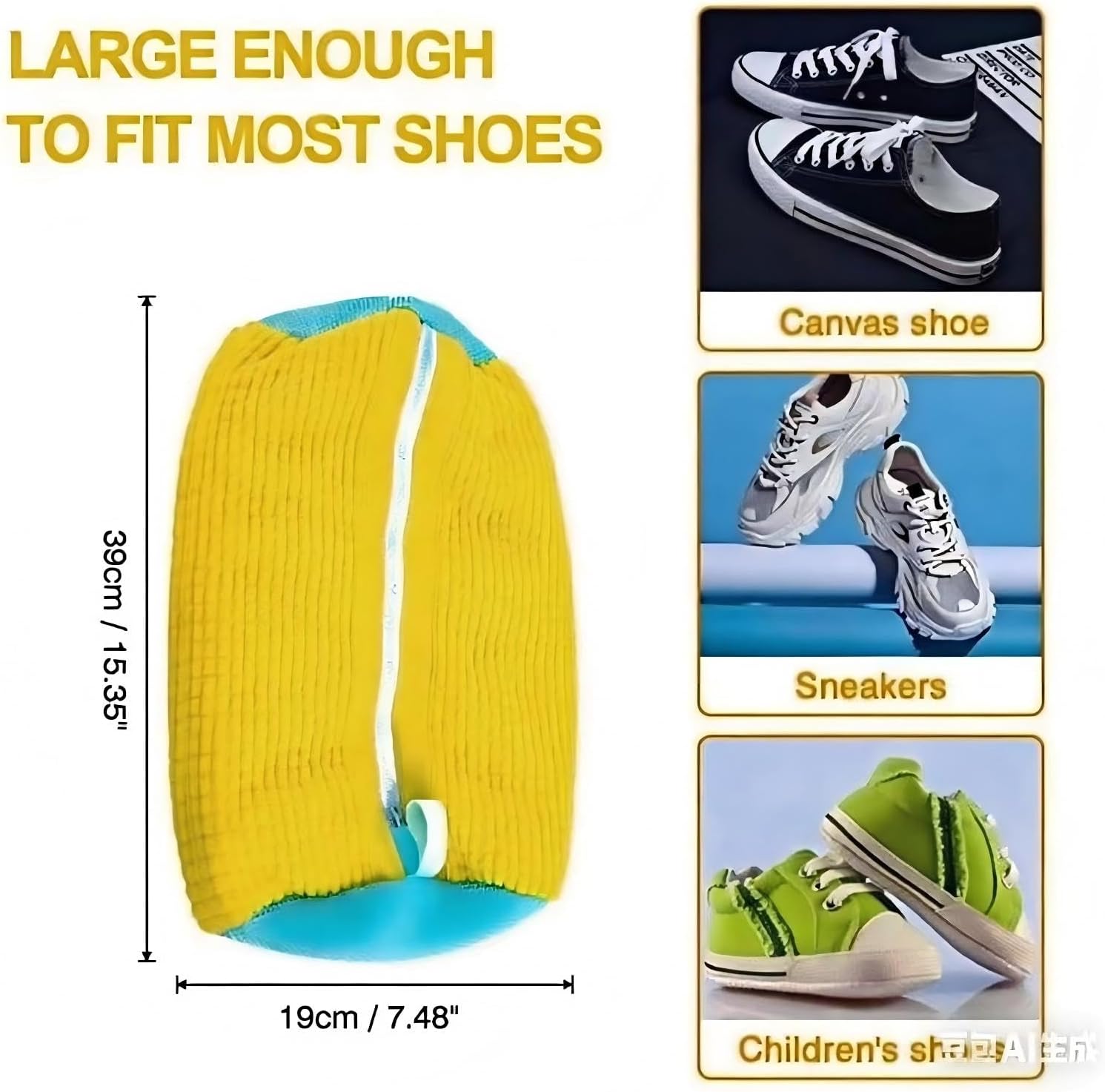 - [All-Purpose Deep Cleaning] Made of polyester nylon, the shoe cleaning bag is tear-resistant and highly permeable. Soap and water easily penetrate into shoes. The plush textured fibers inside provide all-around deep cleaning of your shoes without causing water damage, fading and deformation.