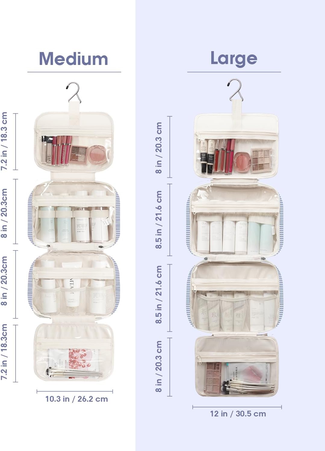 - PLENTY of ROOM - Fold size 10.75x8x5.5 inch, easily fit travel-size toiletries as well as makeup like shampoo, conditioner, lotion, toothpaste, toothbrushes, hair brush, shaving kit and a few extra items