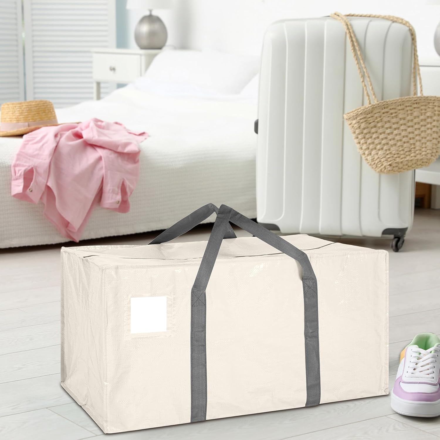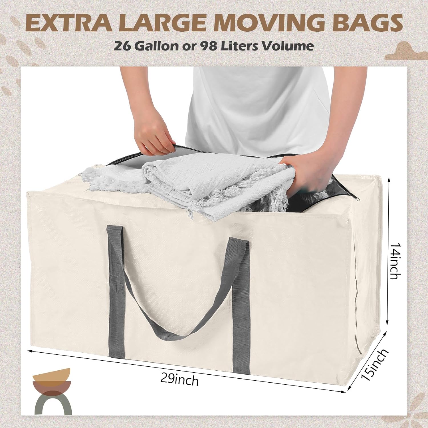 8 Pack Extra Large Moving Bags Heavy Duty Packing Bags with Extra Long Handles and Zippers Storage Totes for College Students Room Dorm Essentials Packing Supplies(Beige)