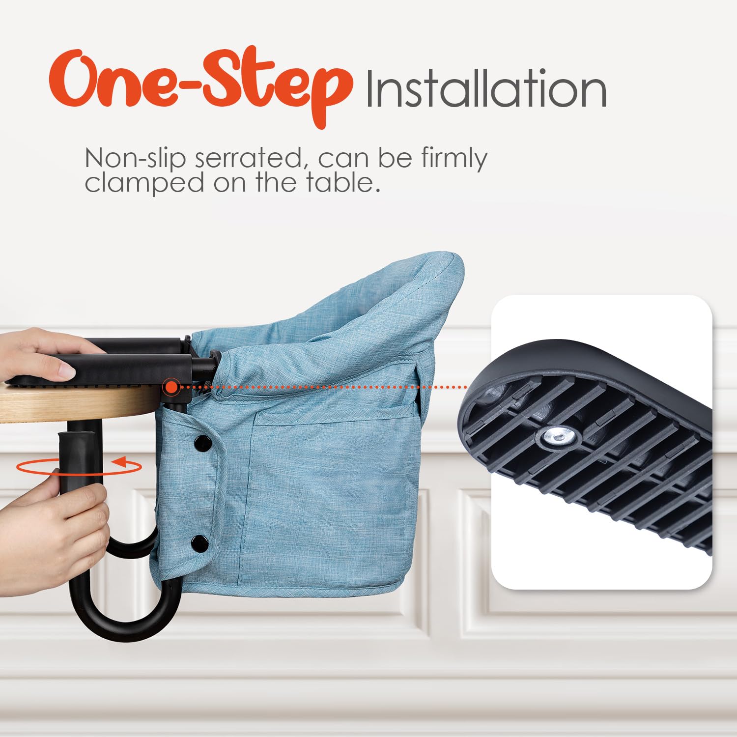 - 【Safe and Secure for Your Baby】The 3-point safety harness, sturdy aluminum alloy clamps, and thick, tear-resistant Oxford fabric ensure your baby is securely fastened and comfortable while sitting in the chair. With a maximum weight capacity of 15kg, this hook on chair is durable and reliable