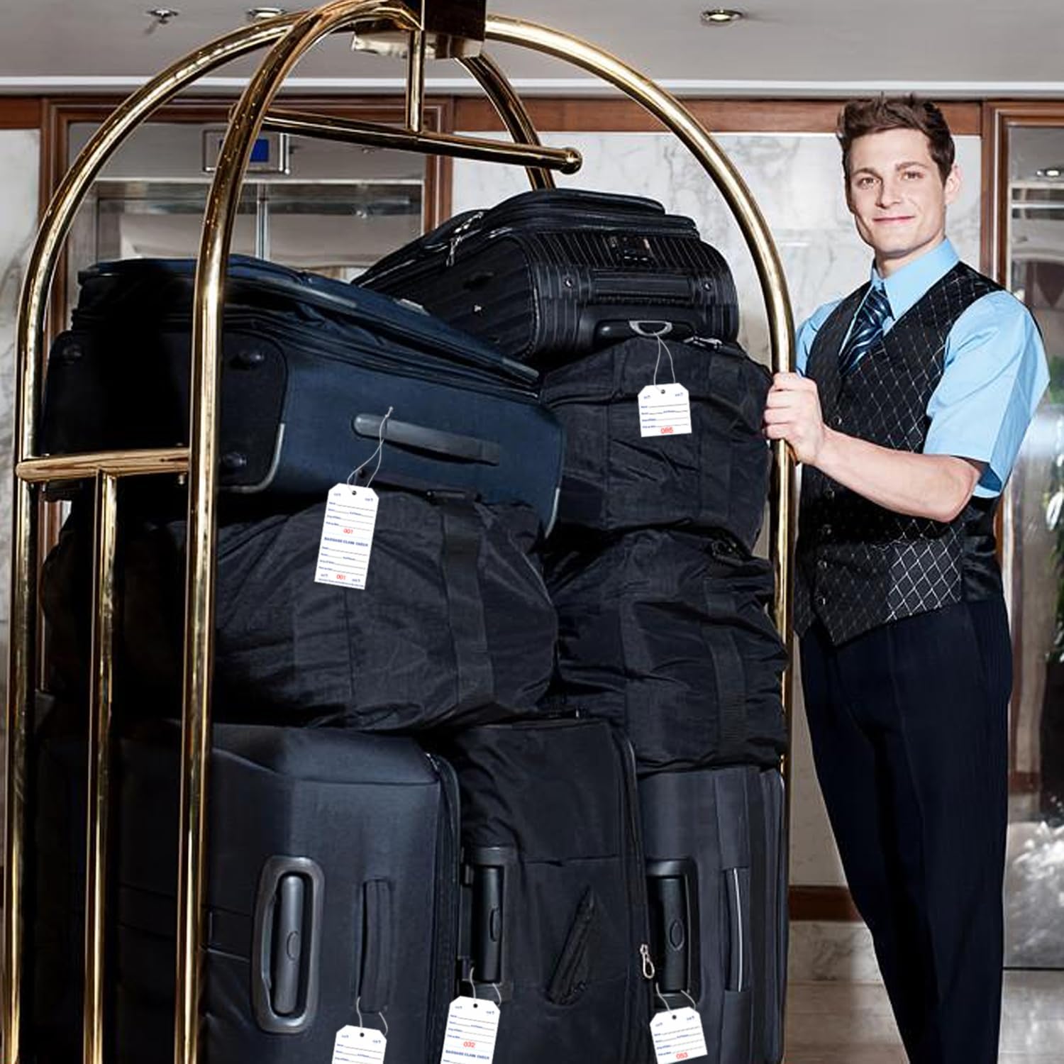 - Pre-Numbered for Efficiency (001-1000): Each pack contains 1000 baggage claim check tags, pre-numbered 001 to 1000, enabling rapid identification and tracking to streamline baggage control in hotels and transport services.