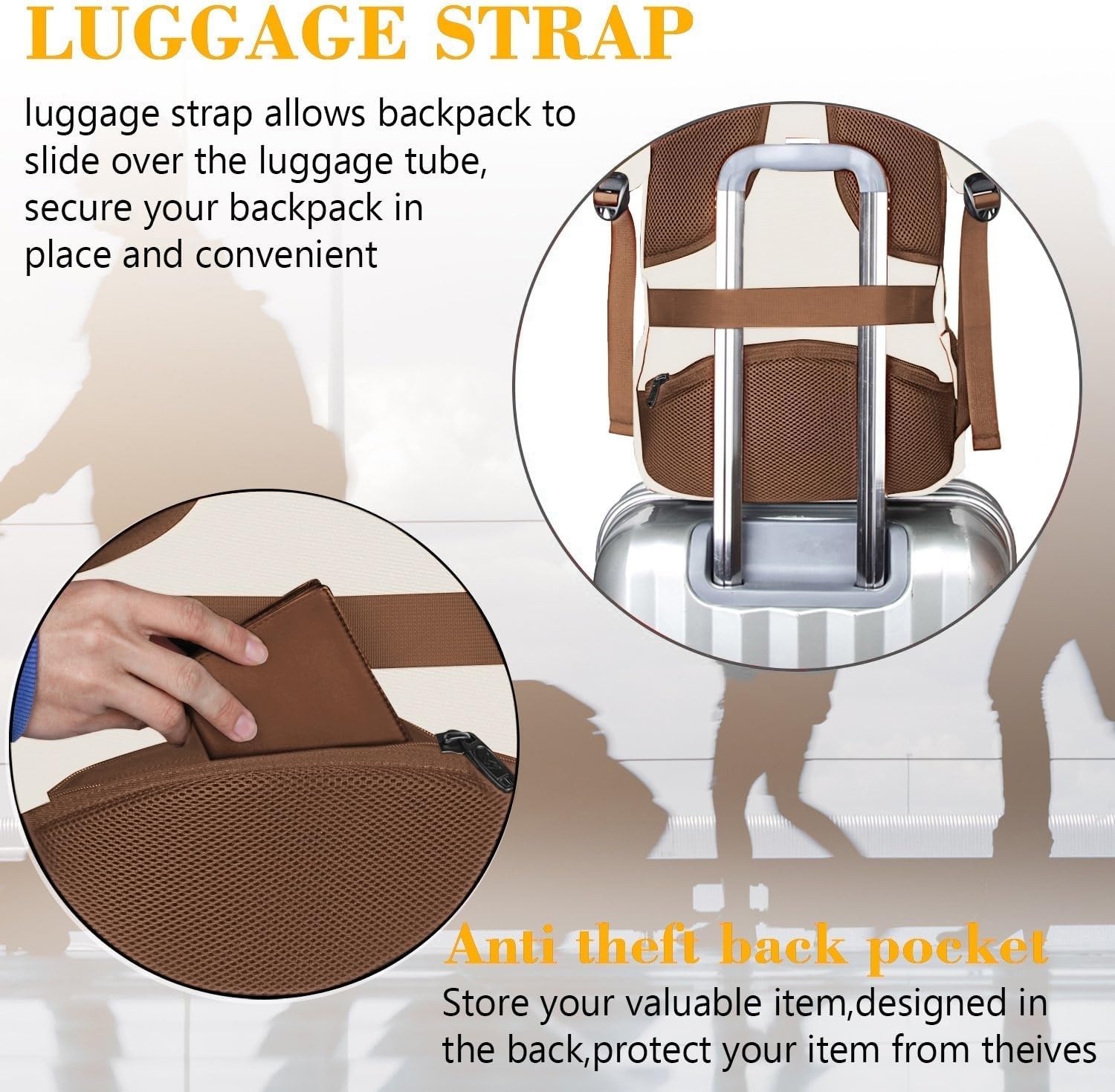 - FUNCTIONAL & SAFE: Dimensions: 18*12*7.8 inches. A luggage strap allows travel laptop backpack fit on luggage/suitcase, slide over the luggage handle tube for easier carrying. With a hidden anti theft pocket on the back protect your valuable items from thieves. Well made for international airplane travel and day trip using