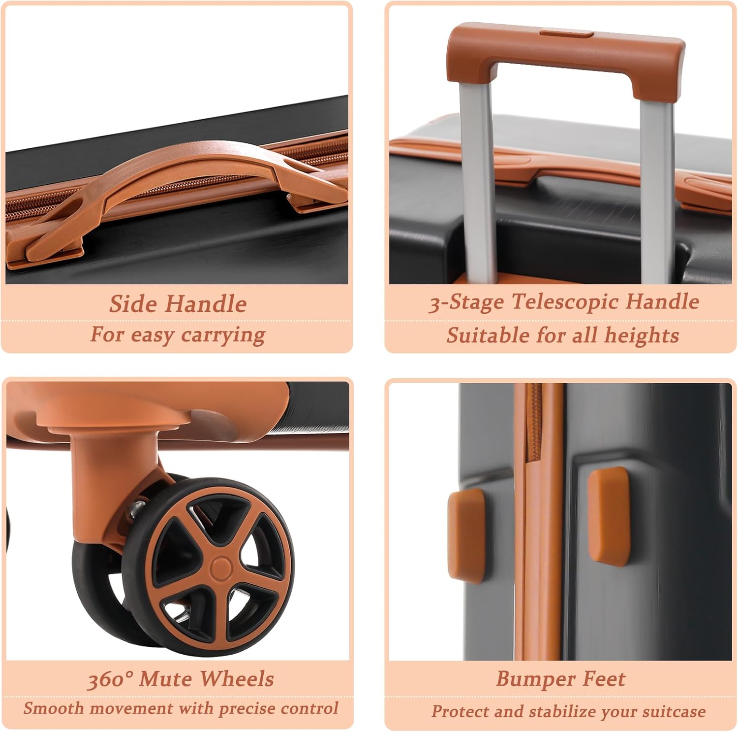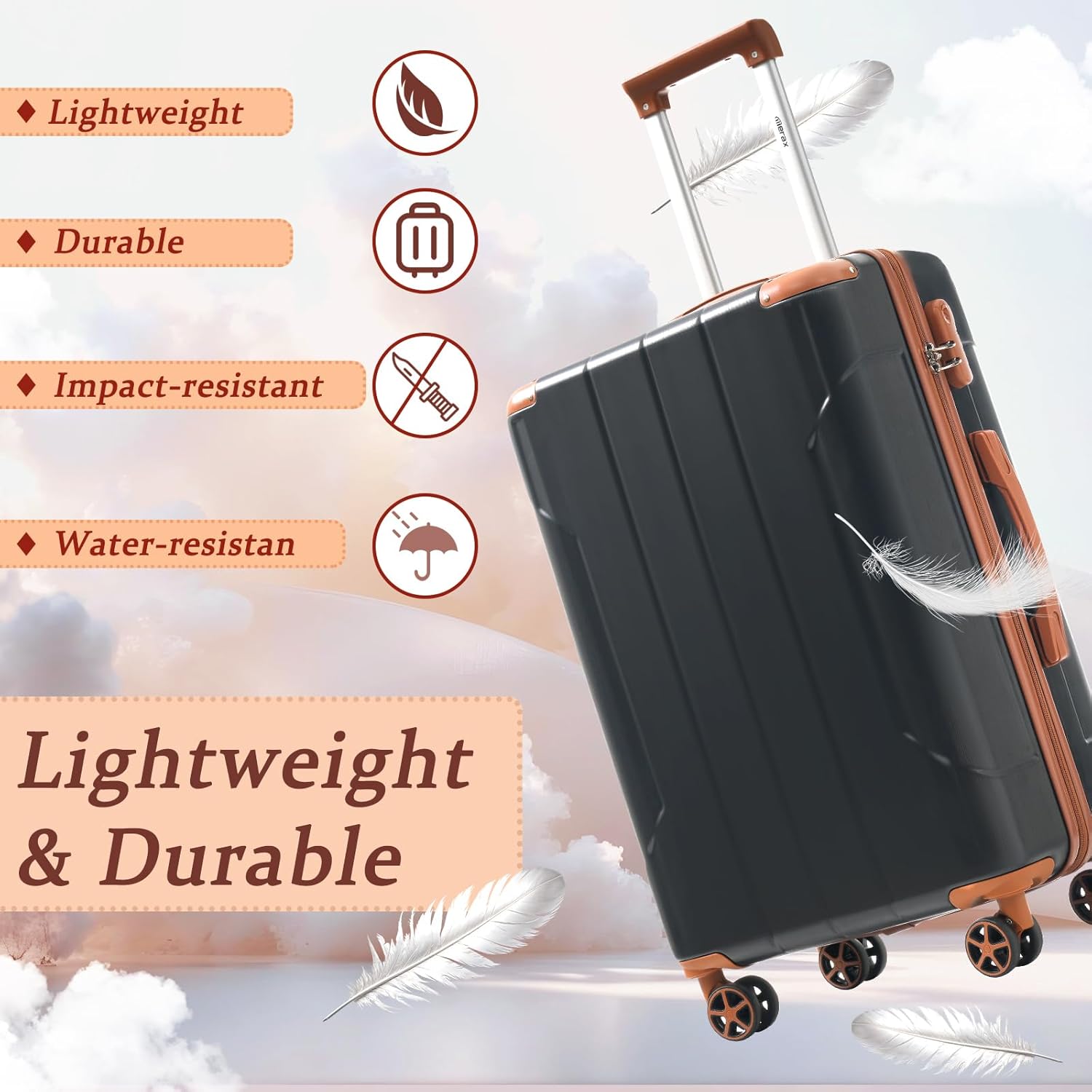 Merax Luggage Sets 3 Piece Hardshell 8 Spinner Wheels Lightweight Suitcase Corner Guards Travel Luggage (Black brown 20IN 24IN 28IN)