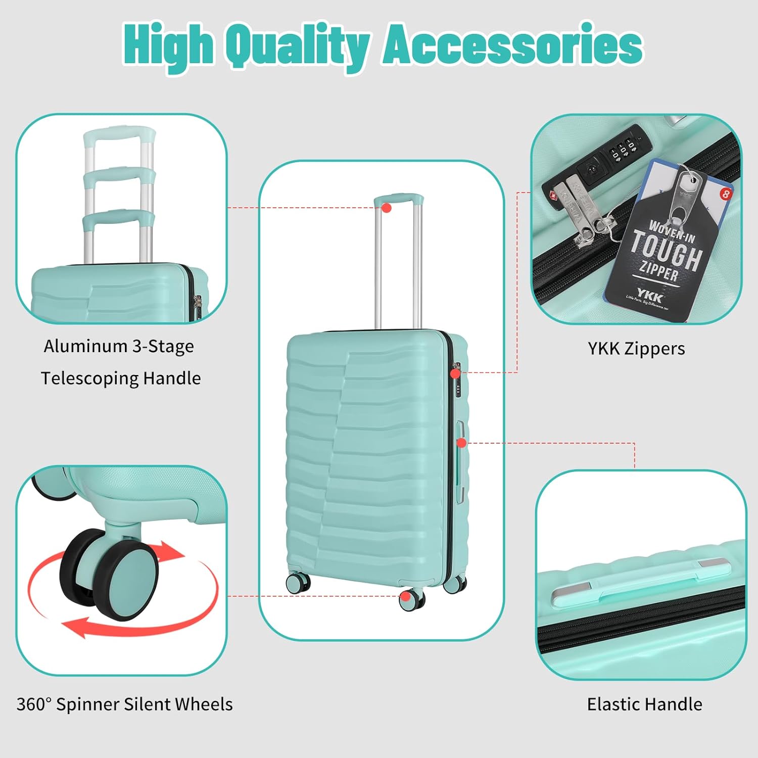 5-Piece Lightweight Luggage with Backpack Sets, ABS+PC Hard Shell Suitcase with TSA Lock & YKK Zipper (MInt Green, 20in/24in/28in/BP/TB)