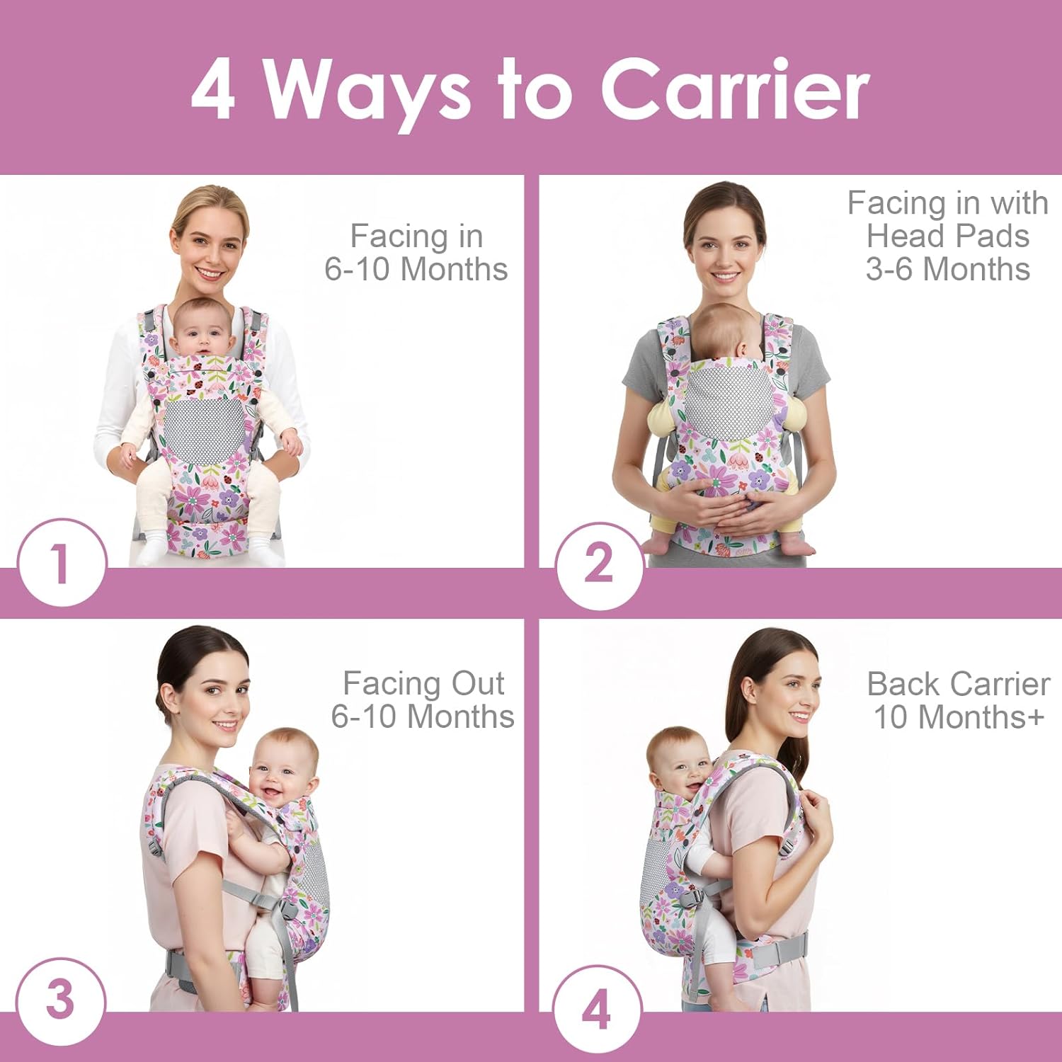 - 4-in-1 Baby Carrier Newborn: The baby chest carrier can be used face in or out and back carrier to meet the needs of infants at different periods, experience hands-free convenience and enjoy bonding time with your little one. It is also a perfect gift for new parents