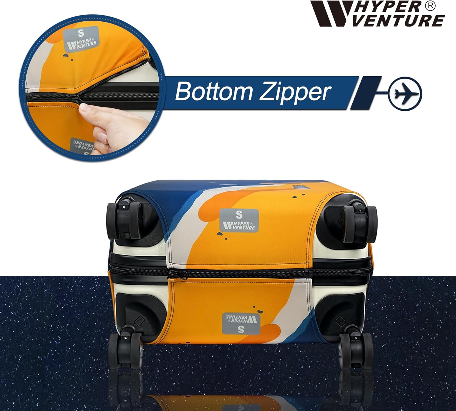 - HYEPR VENTURE luggage cover is made of 300 grams of elastic material, 15% spandex and 85% polyester fiber, designed to offer superior protection against scratches, dirt, and spills. This ensures your suitcase remains unblemished throughout your journey.