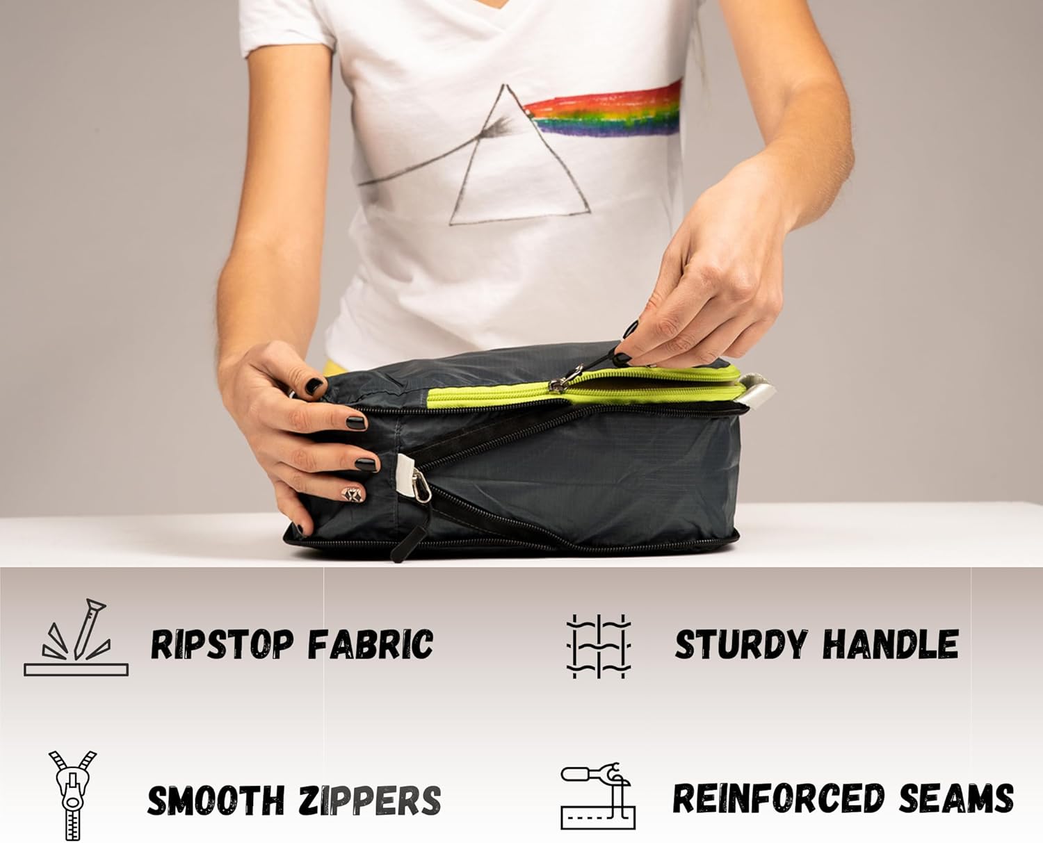- Save that needed space and time while packing - double zipper compression system that vacuum the excess air from the cubes and makes them incredibly compact.