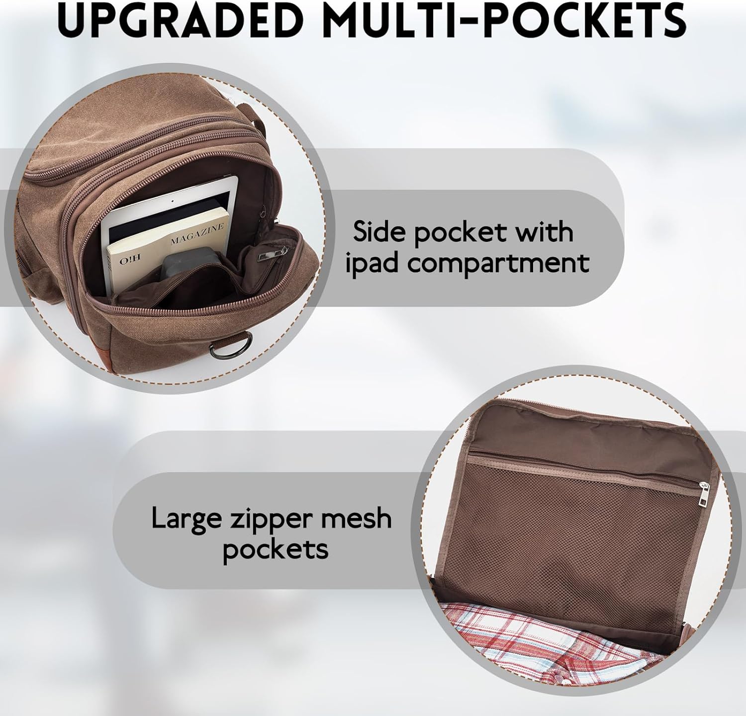 - Expandable Design: Our canvas duffle bag for men expands the size from(L)20.86x (W)9.8 x (H)11.8 inches to (L)24.8 x (W)9.8 x (H)11.8,with 2 side sturdy zippers easy adjust its size to suit your needs, ideal as a carry on travel duffel bag.