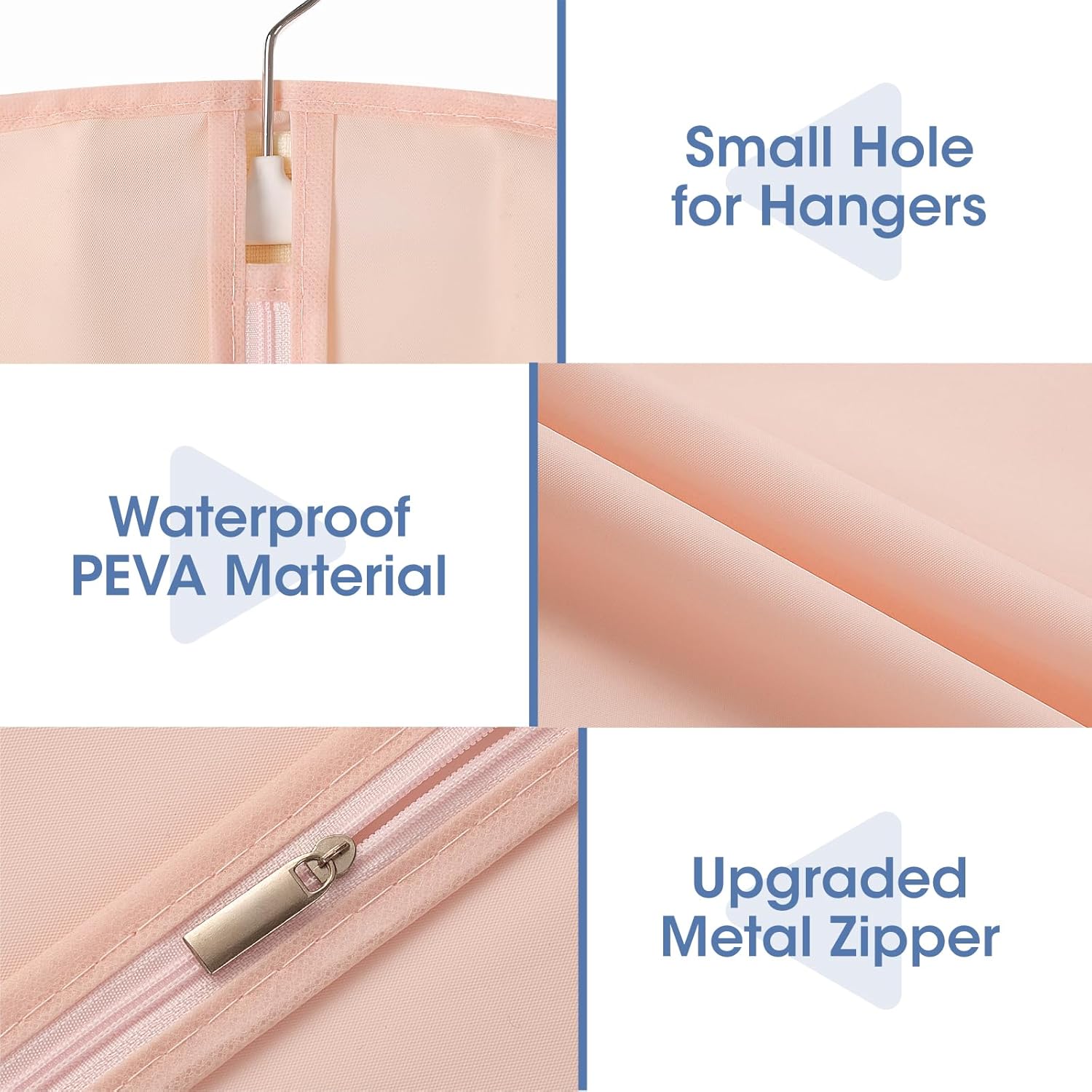 - đ ăSmooth Zipperă â This hanging garment bag features a high-quality stainless steel zipper that opens and closes smoothly. Both ends of the zipper are equipped with stoppers to ensure the zipper stays on track.