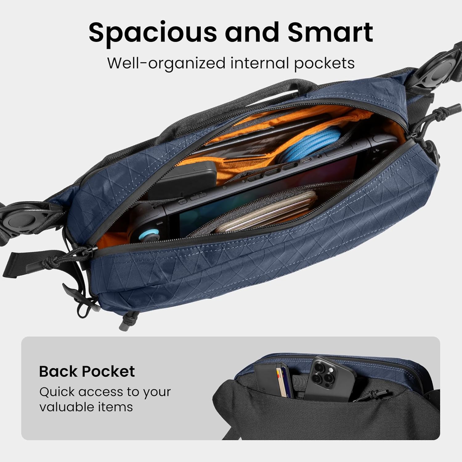 • Superior Protection for Necessities: Designed for urban explorations or short trips, this sling features a cushioned compartment designed for devices such as the Nintendo Switch 2/Steam Deck OLED/ASUS ROG Ally/ASUS ROG Ally X/Legion Go/PlayStation Portal /iPad Mini/DJI Osmo Pocket 3/DJI Osmo Mobile 6/DJI Action 3/4/GoPro(For added handheld game console joystick protection, using a slim case is advised)