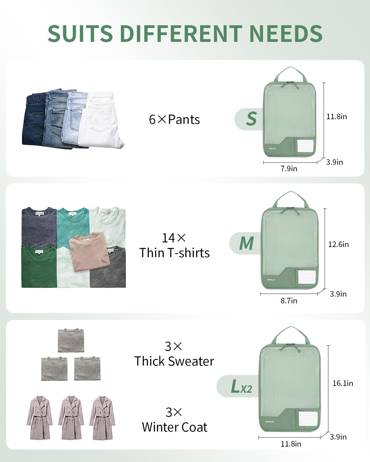 - 【Save Up to 60% Space】: We know packing’s a hassle—space & organization are key. Our packing cubes feature an extra zipper: pull to compress contents, no fuss—just a simple zip-and-squish motion. Tested to save up to 60% space, ditching bulky luggage for smarter, organized travel