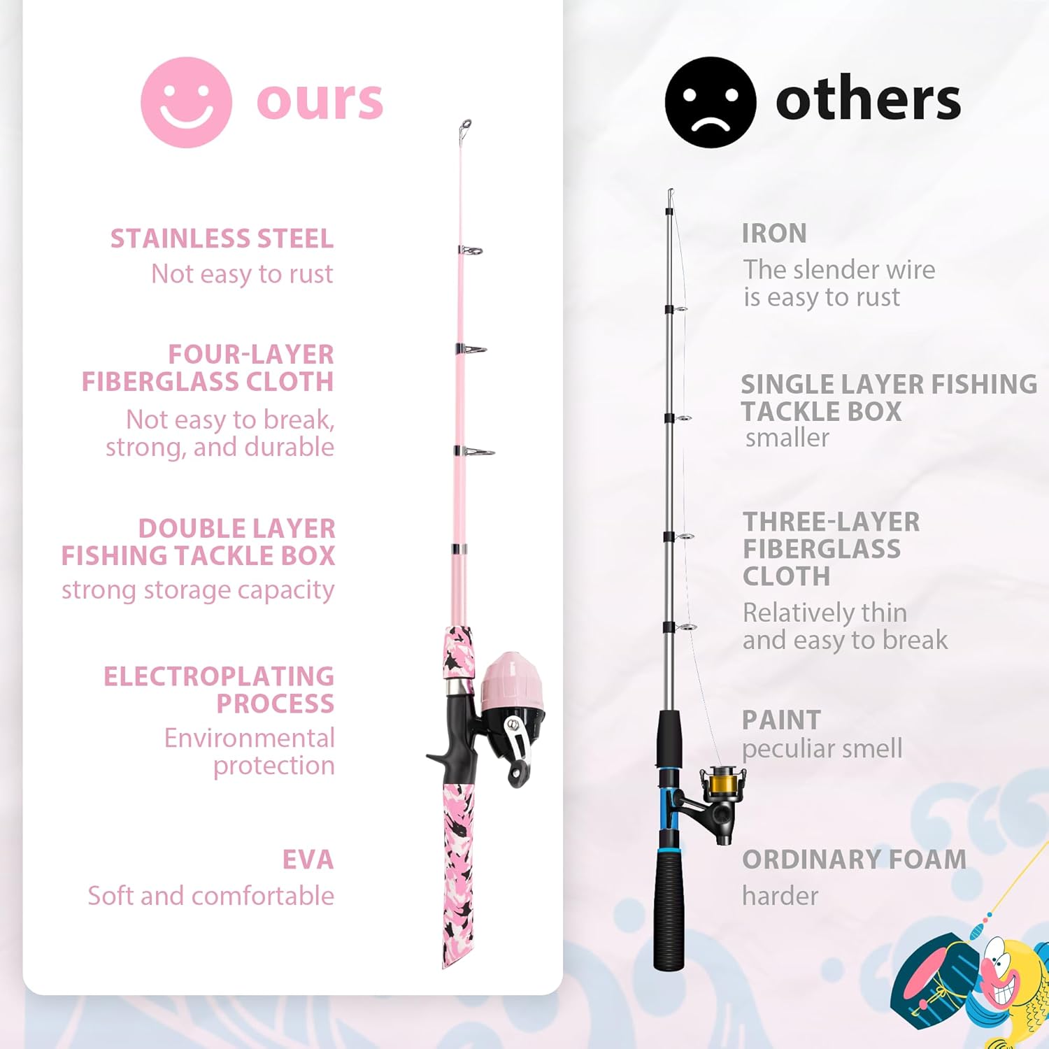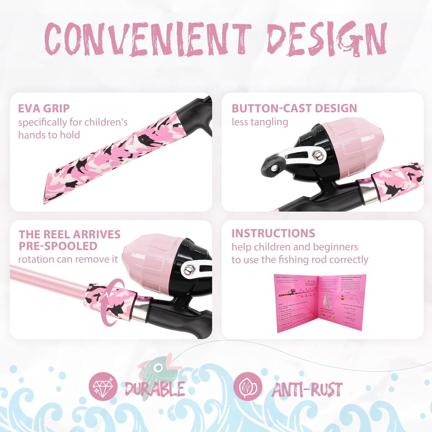 - Easy to Set Up and Use: No need to worry about complicated installation steps. The telescopic fishing rod and pre-spooled reel design allow kids to start fishing right away. The package includes instructions to help beginners learn quickly, give children their best chance of making a catch