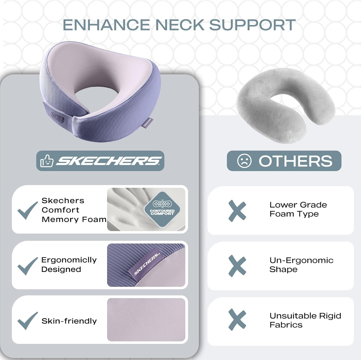 - SKECHERS COMFORT & SUPPORT-Skechers Memory Foam Neck Pillow is designed with the same commitment to comfort and support that defines the Skechers brand. This neck pillow combines premium materials and ergonomic design to provide ultimate comfort and relief for your neck.