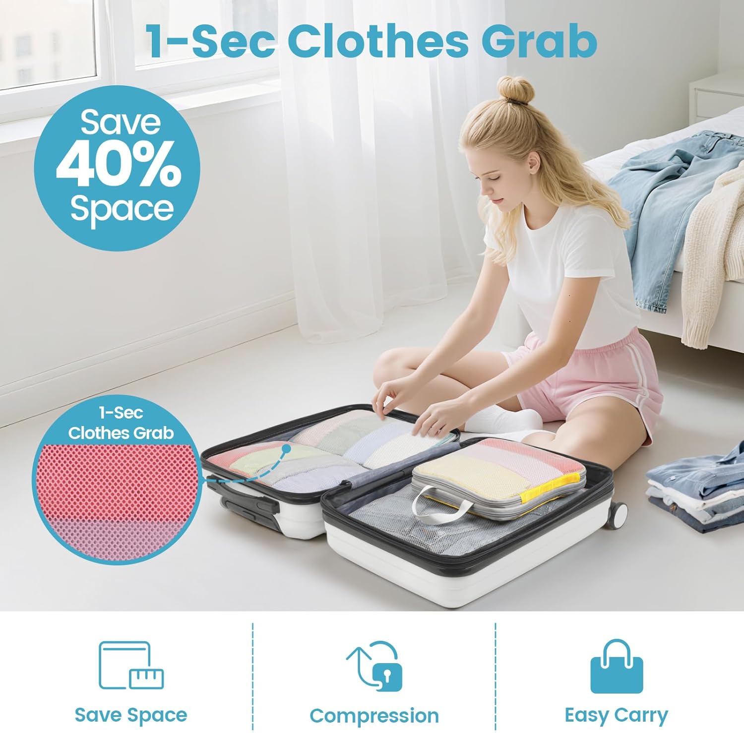 - Suitable for Suitcases, No Wasted Space: The size combinations of packing cubes for travel compression fit 20-28'' suitcases perfectly, ensuring every inch of space is counted. These packing cubes to save space allow for maximized space utilization and enable efficient classification and storage