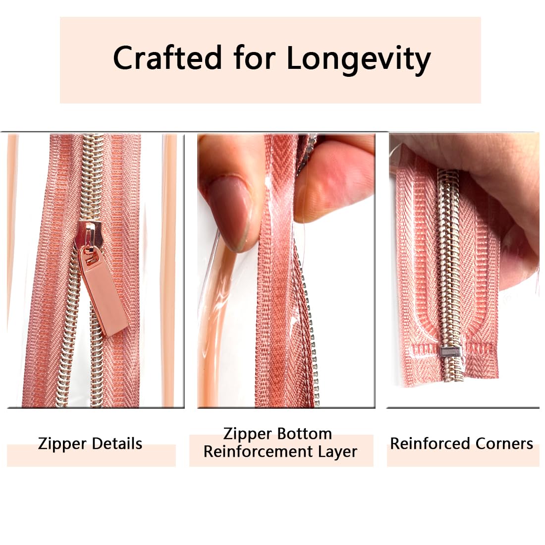 - Durable Transparent PVC & Reinforced Construction: This transparent toiletry bag Crafted from 0.6mm thick, eco-friendly PVC material, the bag offers clear visibility for quick item identification and security inspections. Reinforced seams enhance durability, minimizing leakage risks while maintaining flexibility (note: zipper is non-waterproof)