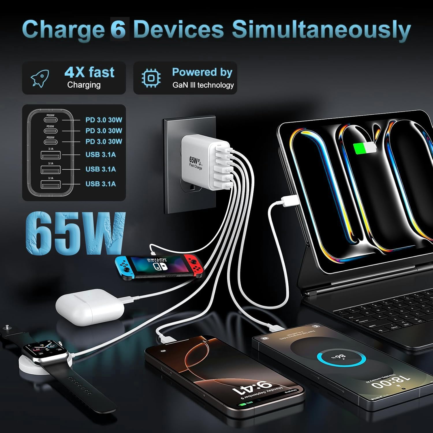- 👍Due to the special 6-port,the USB charger is compatible with almost all electronic devices,charging adapter for iPhone 17/iPhone 17 Pro/iPhone 17 Pro Max/iPhone 16/iPhone 16 Pro/iPhone 16 Pro Max/iPhone 15 Plus/iPhone 15/iPhone 15 Pro/iPhone 15 Pro Max/iPhone 14/iPhone 14 Pro/iPhone 14 Pro Max/iPhone 13/iPhone 13 Mini/iPhone 13 Pro Max/iPhone 12/iPhone 12 Pro Max/iPhone 12 Pro Max/iPhone 12 Mini/iPhone SE 2020/iPhone 11/iPhone 11 Pro/iPhone 11 Pro Max/iPhone XR/iPhone XS/iPhone X/iPhone 8/iPhone 7,iPad Air/Pro/Mini,Samsung Galaxy S25/S22/S21/S20/S10/S9/S8/A12/A13/A22/A32/A52/A53/A71/Note 20 10,Tablets,LG,Google Pixel and other digital devices compatible