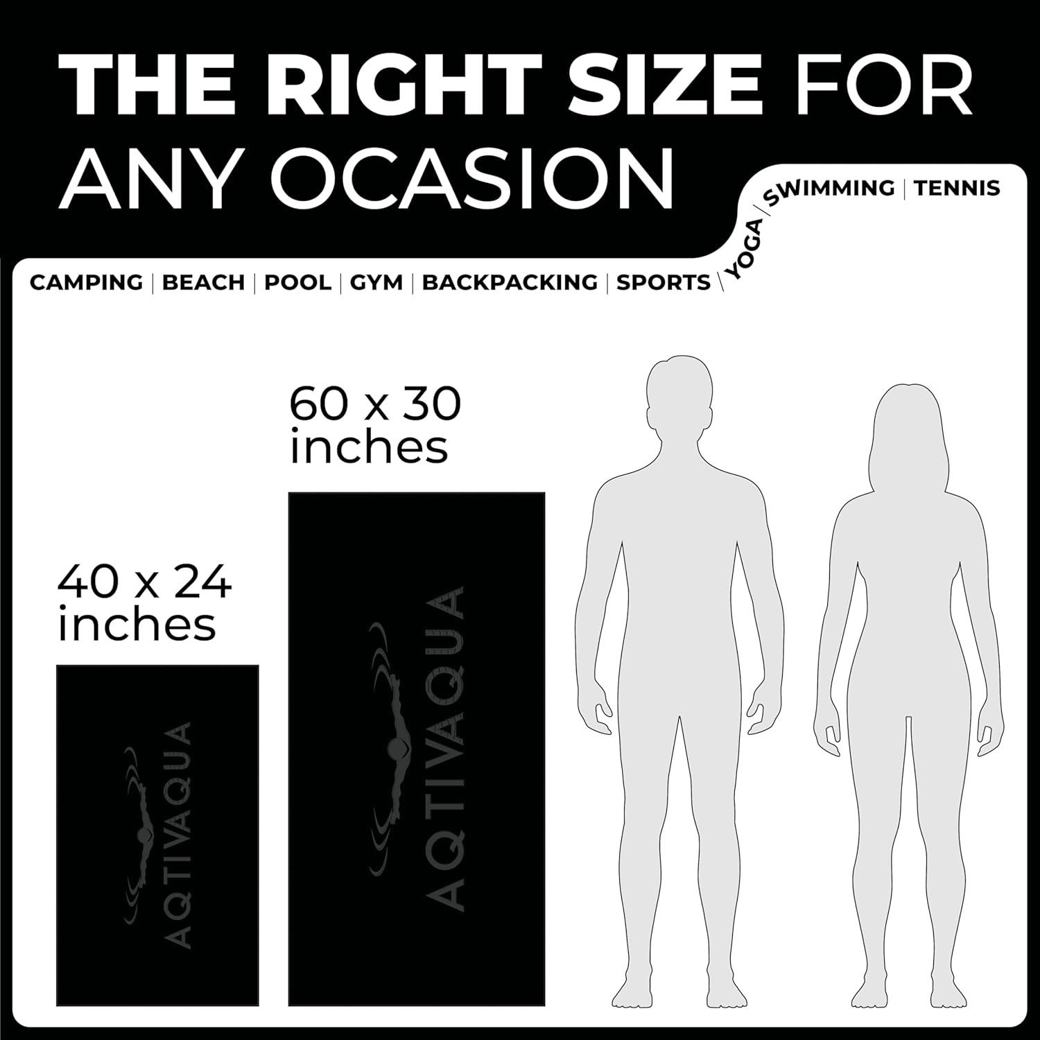 AqtivAqua Quick Dry Towel - Lightweight Microfiber Travel Towel w/Bag - Fast Drying Towel Set for Camping, Beach, Pool, Gym, Backpacking, Sports, Yoga & Swim Use, Hiking (Black, M:24"x40")