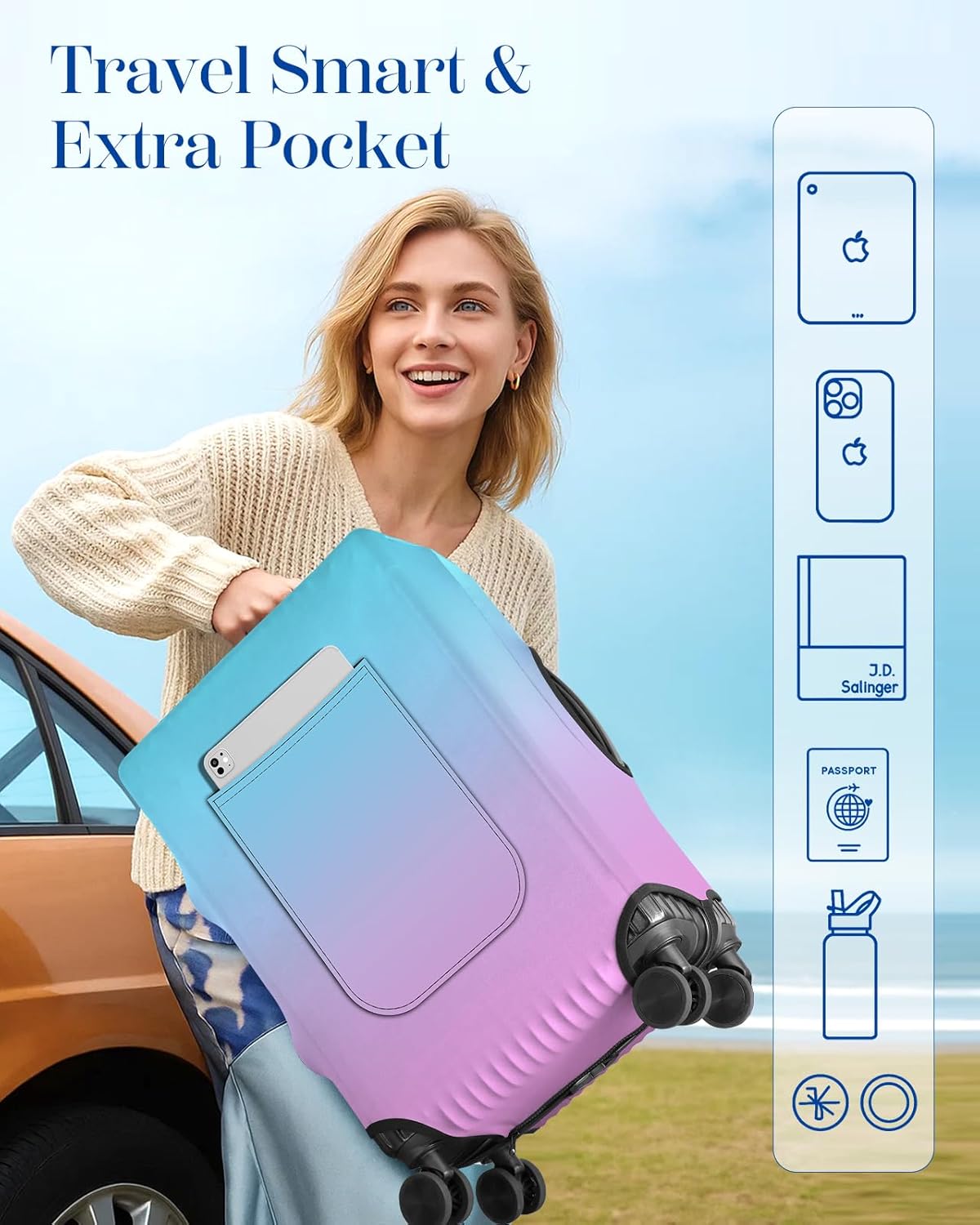 Slohif Luggage Cover for Suitcase Tsa Approved Protector - Luggage Sleeve Large Suit Case Cover Travel Stretch Baggage Case Protective Washable Fit 18-20 Inch Blue Rose Gradient XS