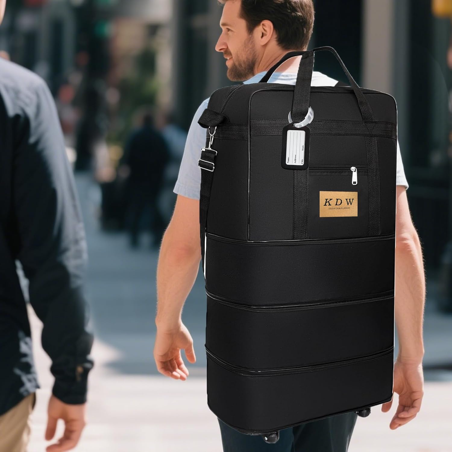 - Easy to carry: foldable and expandable design, saving space and easy to tidy up. There are five universal wheels at the bottom of the foldable duffel bag, which can be rotated 360 degrees at will, silent travel, and the side of the foldable duffel bag is designed with a pull rope, which can be pushed and pulled horizontally, or it can be carried on the shoulder, like a backpack. The travel bag can be carried in the hand or placed on the shoulder to reduce stress.