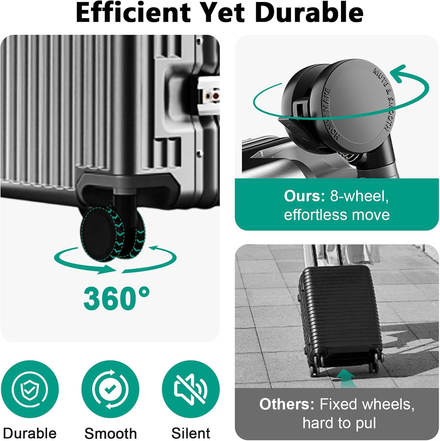 - 【Ultra-quiet universal wheel】Equipped with 60° upgraded silent universal wheels, built-in shock-absorbing bearings, 60% noise reduction, suitable for various road surfaces; a new one-button brake function is added, which can be locked at any time in ramps, subways or crowded places at airports to prevent sliding, making it easier to push for a long time.