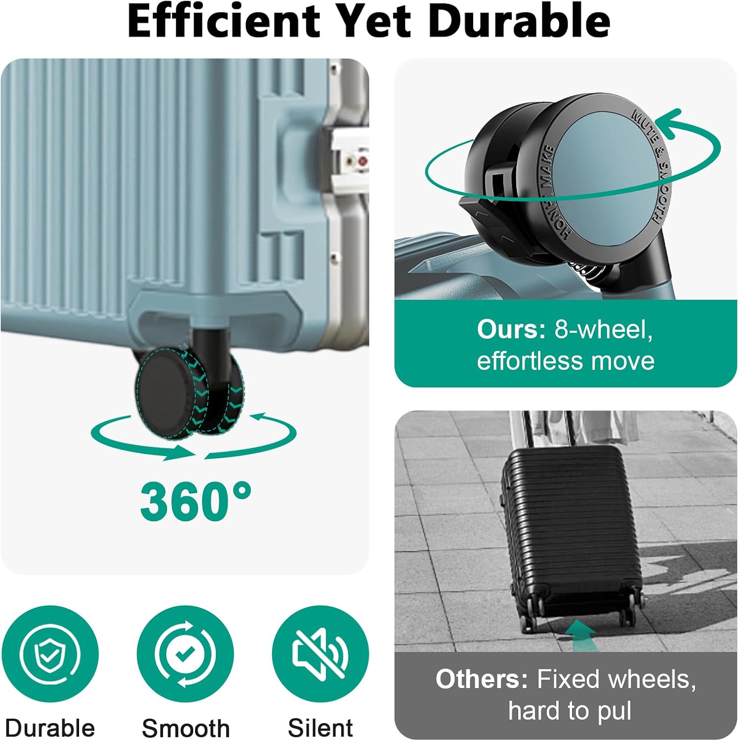 - 【Humanized Design】: The adjustable and sturdy aluminum 3-step telescopic handle is suitable for people of different heights, which improves the convenience and comfort of use. Equipped with 360° dual swivel wheels, the suitcase moves more quietly and smoothly, reducing the burden on travelers.