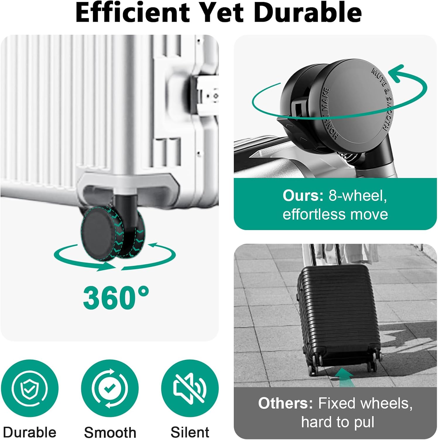 - 【Ultra-quiet universal wheel】Equipped with 60° upgraded silent universal wheels, built-in shock-absorbing bearings, 60% noise reduction, suitable for various road surfaces; a new one-button brake function is added, which can be locked at any time in ramps, subways or crowded places at airports to prevent sliding, making it easier to push for a long time.