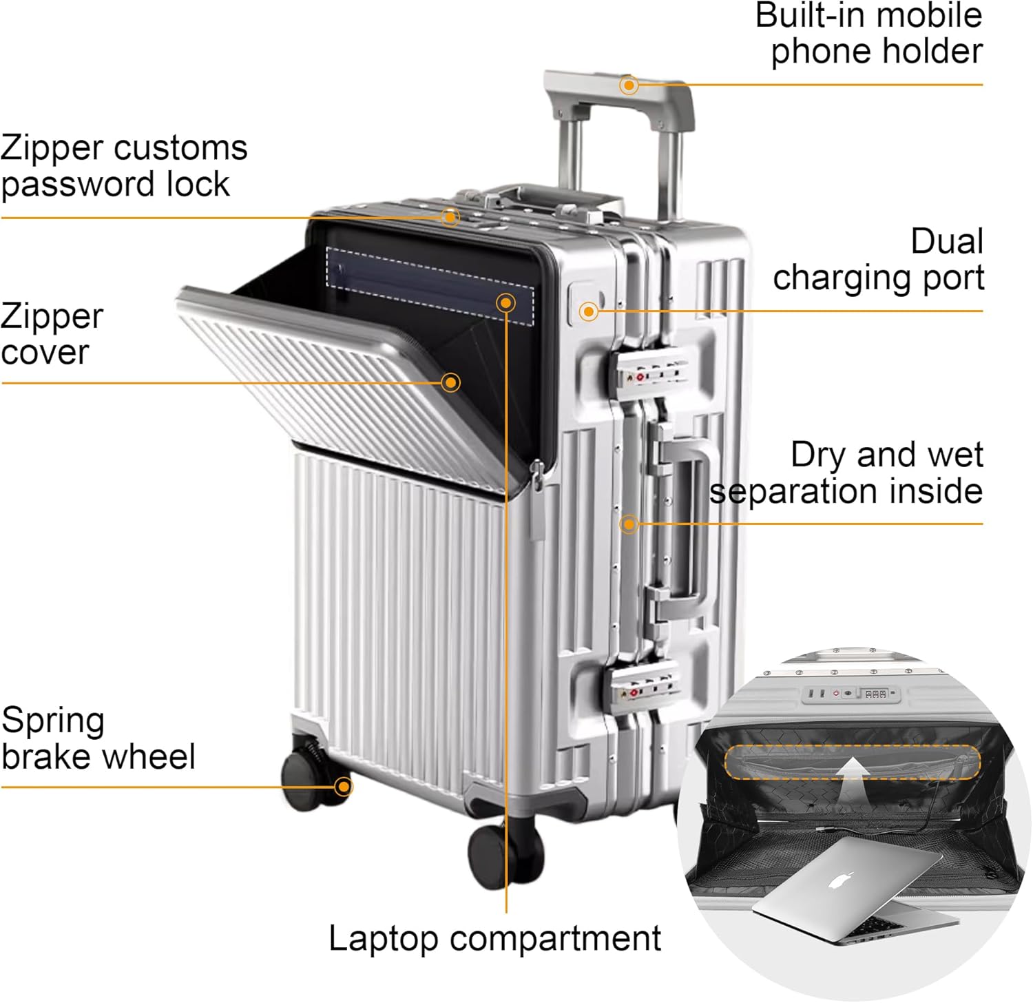 Hard Shell Luggage 20 Inch Travel Suitcase, 22x14x9 Airline Approved with TSA Lock, ABS Aluminum Frame, Lightweight Travel Luggage 20'' 24'' 26'' Carry-on Luggage (Upgraded Silver, 20 Inch)