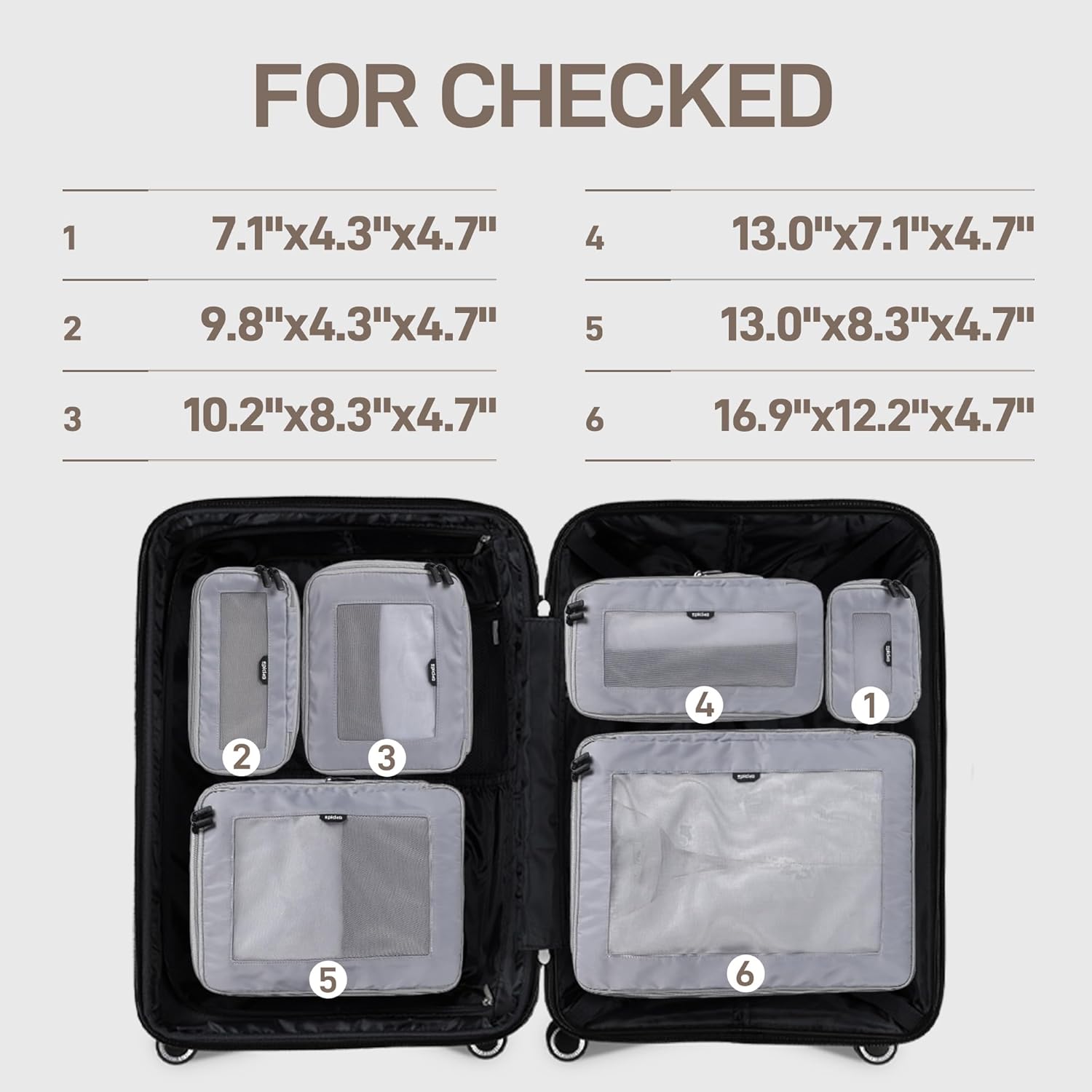 EPICKA TripCozy Compression Packing Cubes - 6 Set Durable Travel Organizer Bags with Mesh Top, Expandable Travel Accessories for Carry on, Luggage, Suitcase, Backpack (Light Grey)
