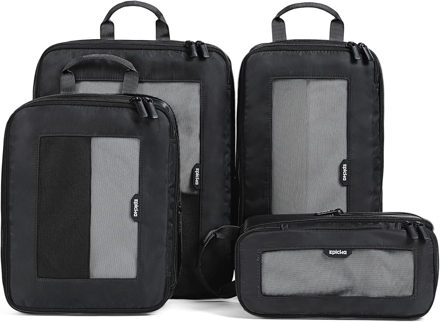 EPICKA TripCozy Compression Packing Cubes - 4 Set Durable Travel Organizer Bags with Mesh Top, Expandable Travel Accessories for Carry on, Luggage, Suitcase, Backpack (Dark Grey)