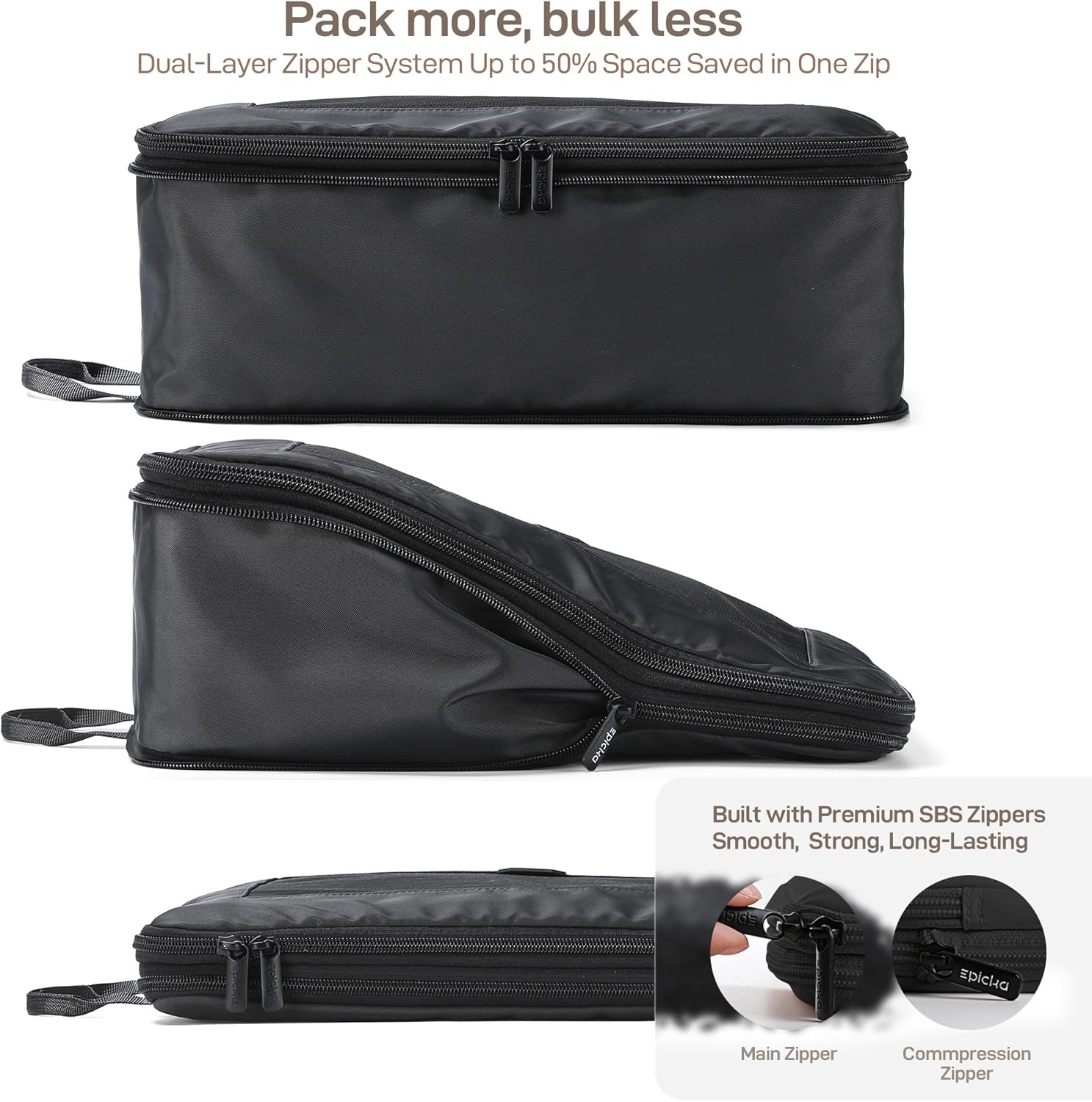 - Double-Zipper Space Optimization: Dual-layer compression zippers reduce clothing volume by half, maximizing suitcase capacity for bulky sweaters or down jackets. The reinforced expansion layer prevents wrinkles on formal wear while enabling carry-ons to hold more your outfits.