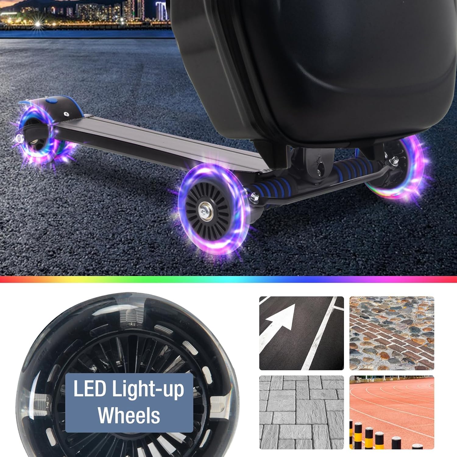- 【LED Light-Up Wheels】Choose the vibrant LED wheel version for added excitement, making nighttime rides safer and more stylish,high elasticity PU silent wheel, smooth sliding without jamming, wear-resistant and adaptable to various road surfaces, effortless for airports/stone roads