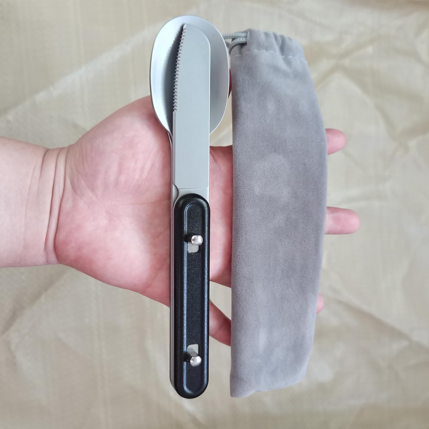 3-in-1 Camping Utensils, Portable Stainless Steel Spoon, Fork and Knife Combo Set for Outdoor Camping Hiking Picnic Travel
