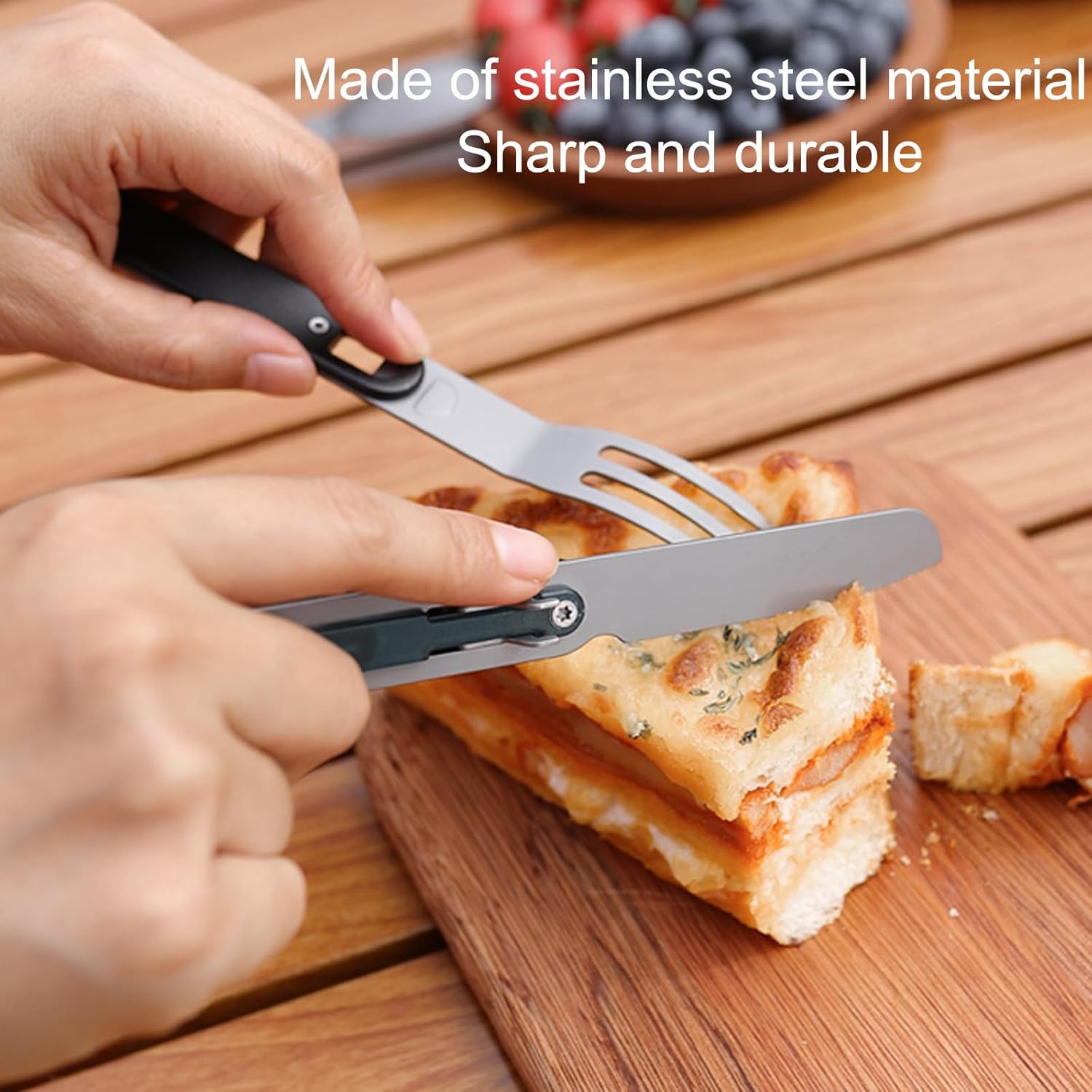 - 【3-IN-1 DETACHABLE DESIGN】: All pieces lock together. It can easily be separated for use. You can take it apart and use a spoon, fork and a knife at the same time. The nesting function keeps them together and readily available when camping, hiking, picnicking, etc.
