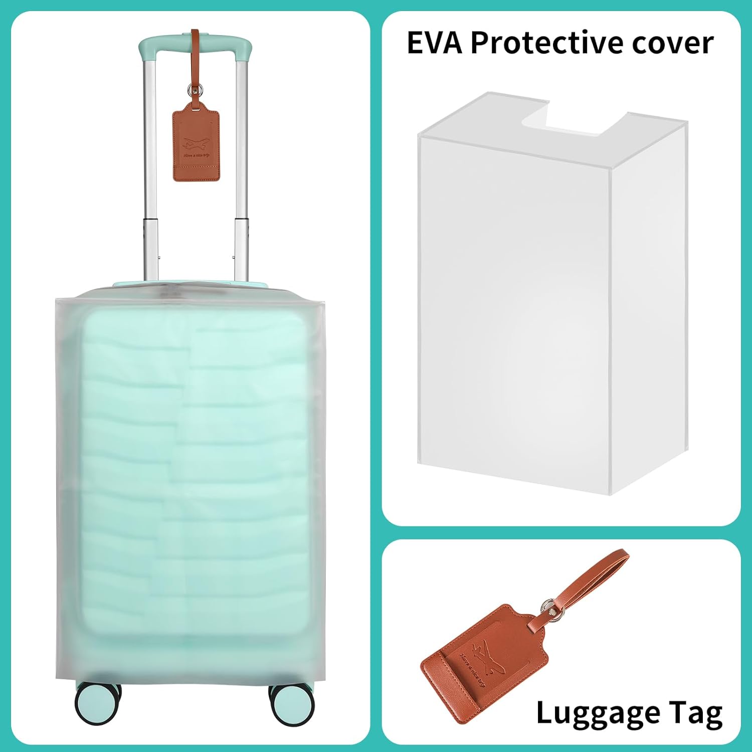 - Airline Approved Carry On Set: Contain a Carry on 22in×14in×9in, complies with a wide range of airline standards to minimize additional costs; an EVA cover to protect your luggage from scratches, stains, dust or damage; and a luggage tag to help you quickly find your suitcase amongst all the other luggage.