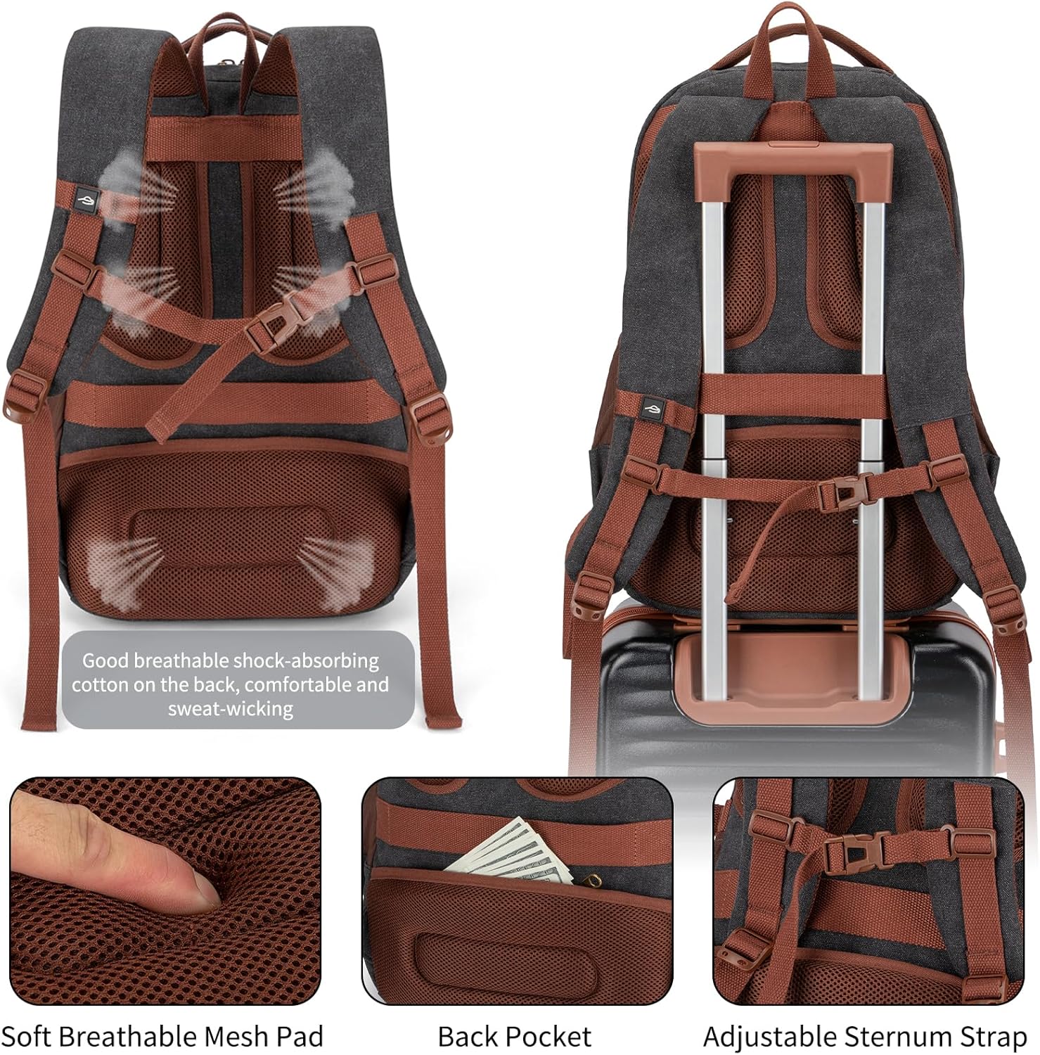 Tzowla Vintage Canvas Laptop Backpack for Men and Women,College Travel Work Rucksack with USB/Type-C Charging Port,Lightweight Bookbag Hiking Casual Daypack Backpacks Fit 15.6 Inch Notebook(Black)