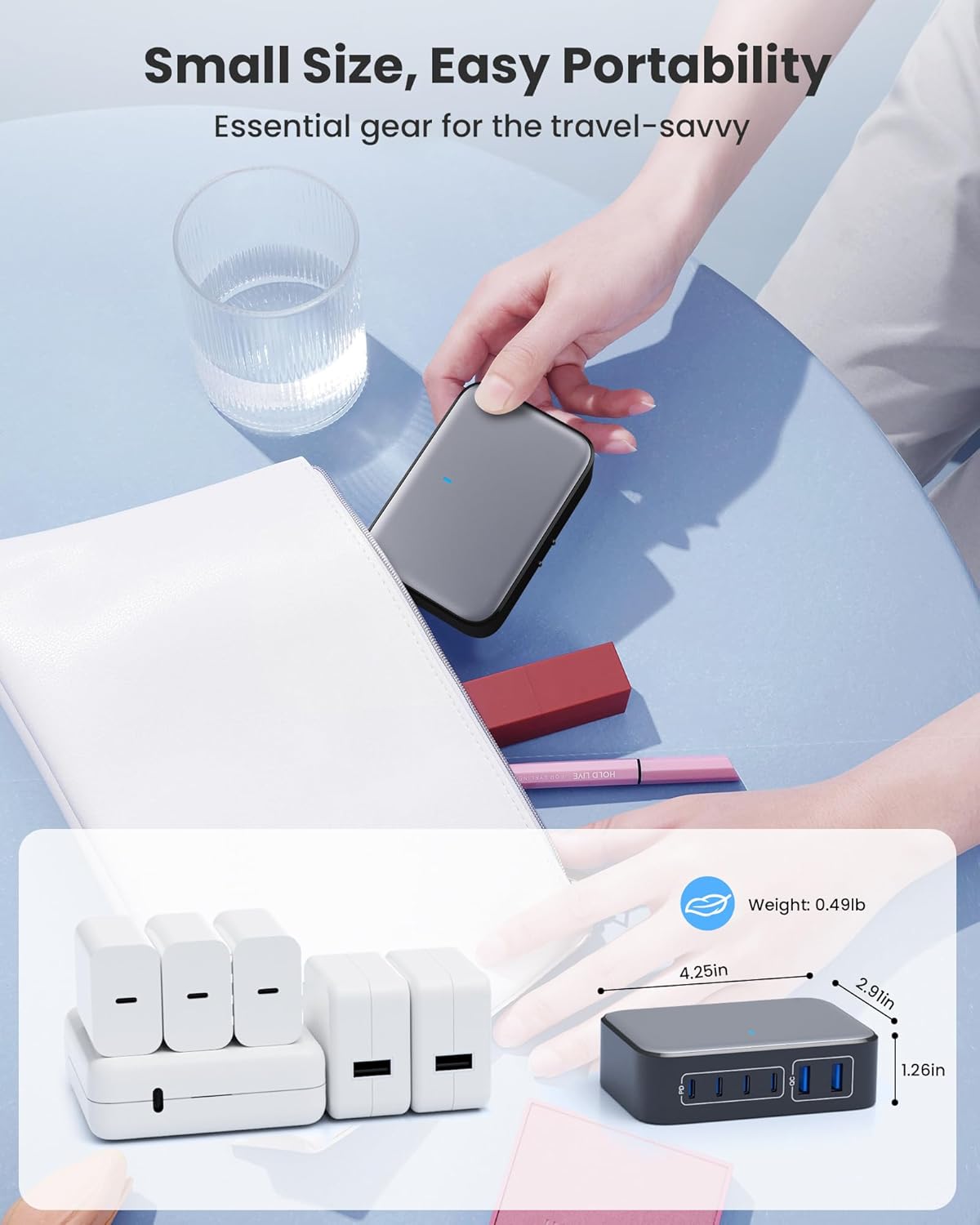 - 【Portable USB C Charging Hub for travel】 Small size saves you 50% space and fits easily into handbags and travel cases. The design with 1.5M/5FT AC extension power cord allows you to charge as you want without worrying about the limitation of distance