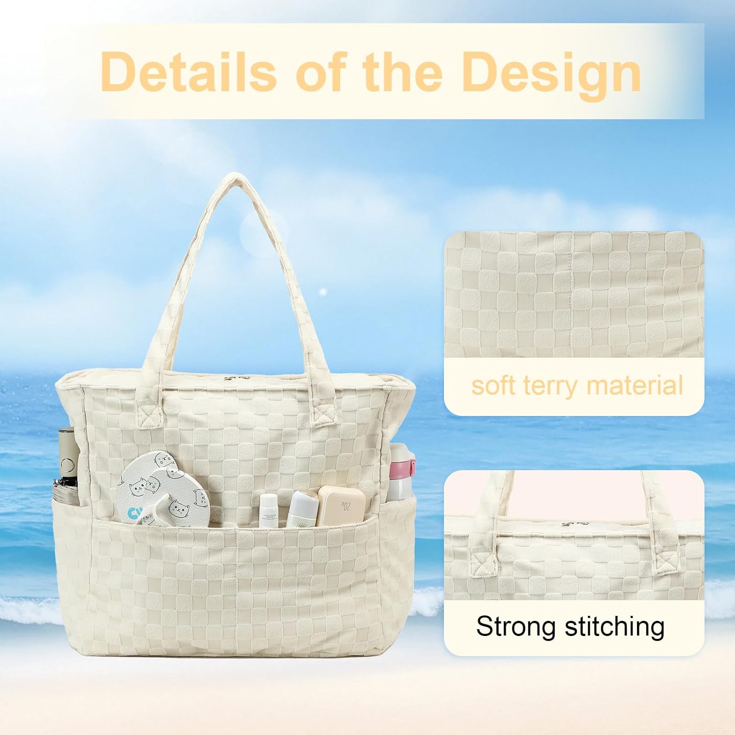 LEDAOU Large Beach Tote Bag Women Waterproof Sandproof Zipper Beach Tote Bag for Pool Gym Grocery Travel with Wet Pocket