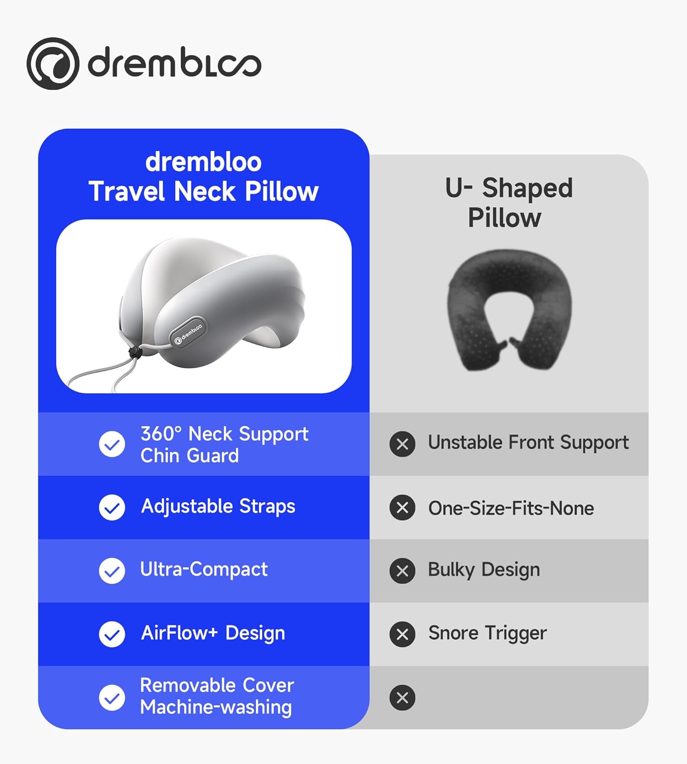 - Cooling design: The airplane pillow To prevent stuffiness during your travel, the travel neck pillows is designed with materials that minimize heat buildup. The pillowcase is made of ice silk, while the core uses BASF memory foam, effectively reducing heat buildup and accelerating heat dissipation.