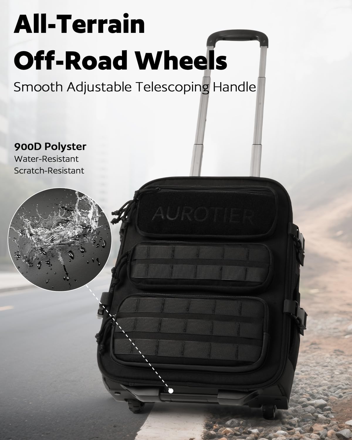 • 【From Books to Gear, It Fits All Here】This rolling tactical backpack features a combined main and laptop compartment to maximize packing space—while still meeting most airline underseat or carry-on size requirements. A slim telescoping handle saves interior space, and this molle backpack with wheels includes a built-in modular system that lets you attach extra pouches or gear for expandable storage