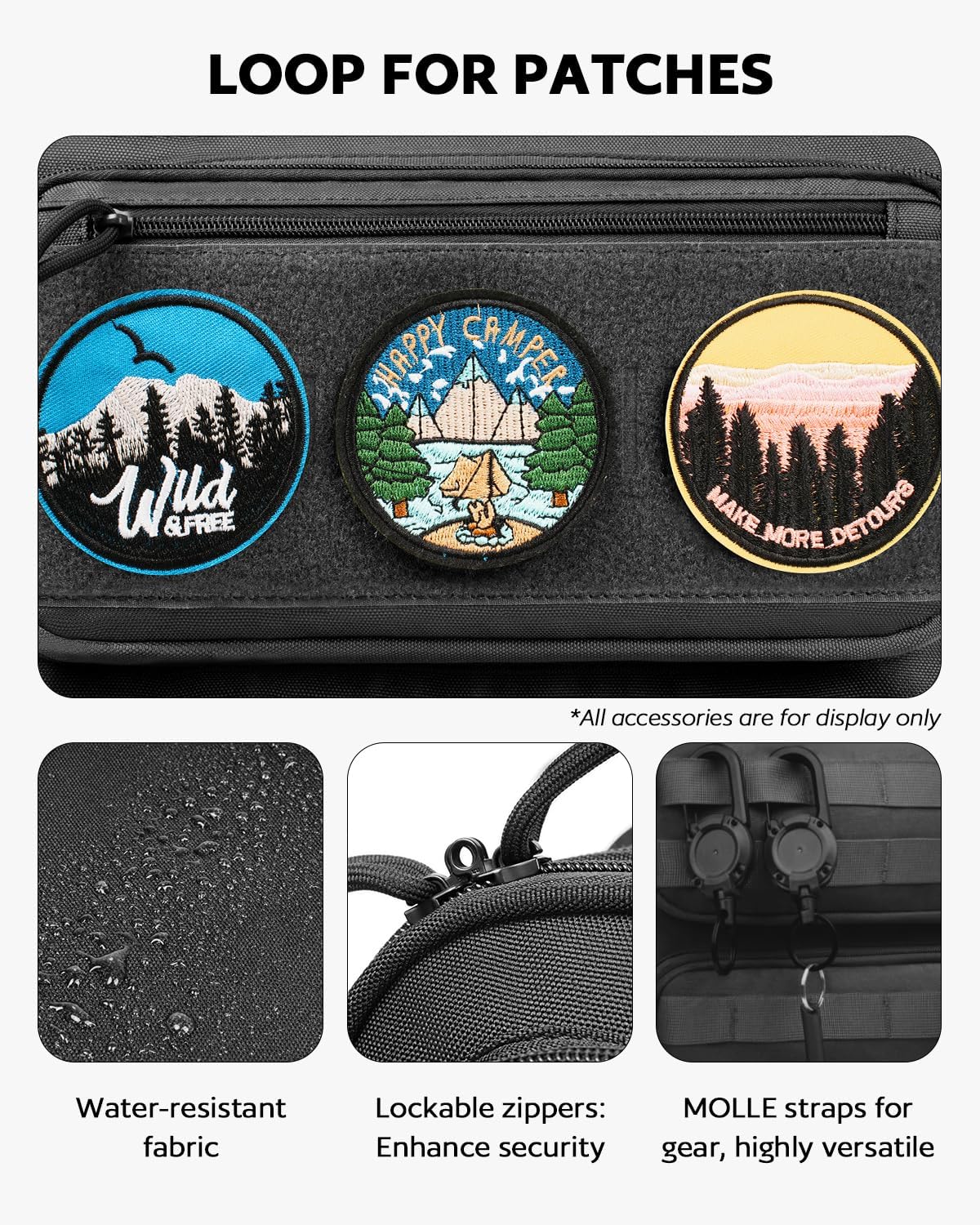 • 【Personalized Touch】Designed for self-expression, this tactical backpack with wheels features a front loop panel to display your favorite patches or name tags. The built-in MOLLE system allows you to customize your loadout with extra pouches or gear—great for commuting, travel, or outdoor use. This wheeled outdoor backpack is not just functional—it’s personal, practical, and makes an excellent gift for college, frequent travelers, or anyone into tactical style