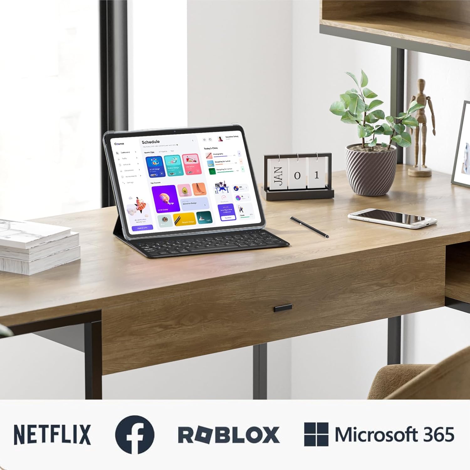 - 【Performance Leap】This Android 15 tablet has 64GB ROM+12GB RAM(4GB+8GB), 1TB additional expansion, which can store more games, movies, videos, music, and work software for you, and supports Netflix, Facebook, Tik Tok, Youtube, and other software, you can play more comfortably games, download and preview rich movies, and accommodate massive work files.