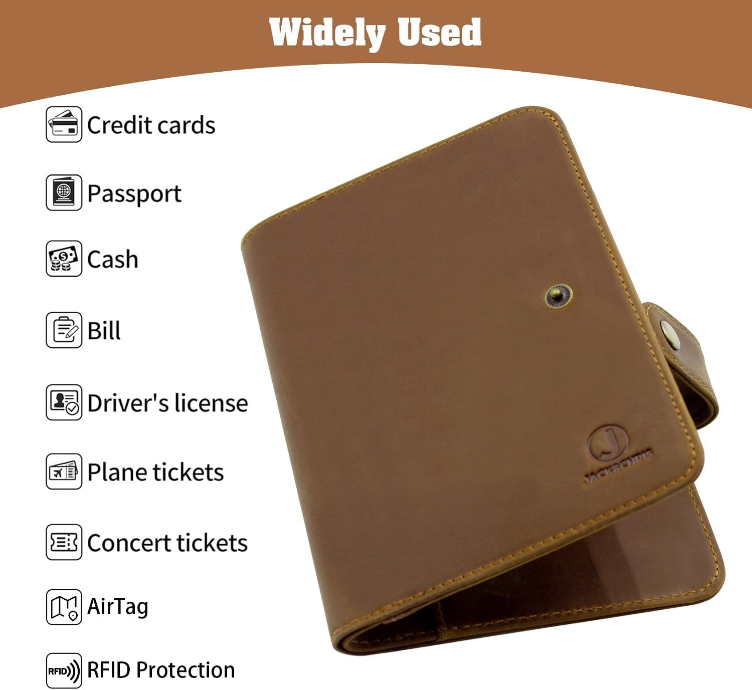 Jack&Chris Genuine Leather Handmade Passport Holder For Travel, RFID Blocking Passport Holder with Card Slots, Travel Essentials wallet with Pen Holder for Women and Men for Gifting, Light Brown