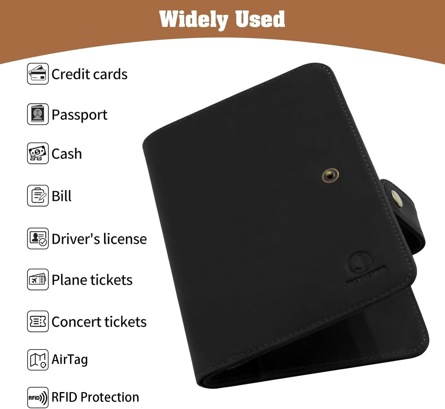 Jack&Chris Genuine Leather Handmade Passport Holder For Travel, RFID Blocking Passport Holder with Card Slots, Travel Essentials wallet with Pen Holder for Women and Men for Gifting, Black
