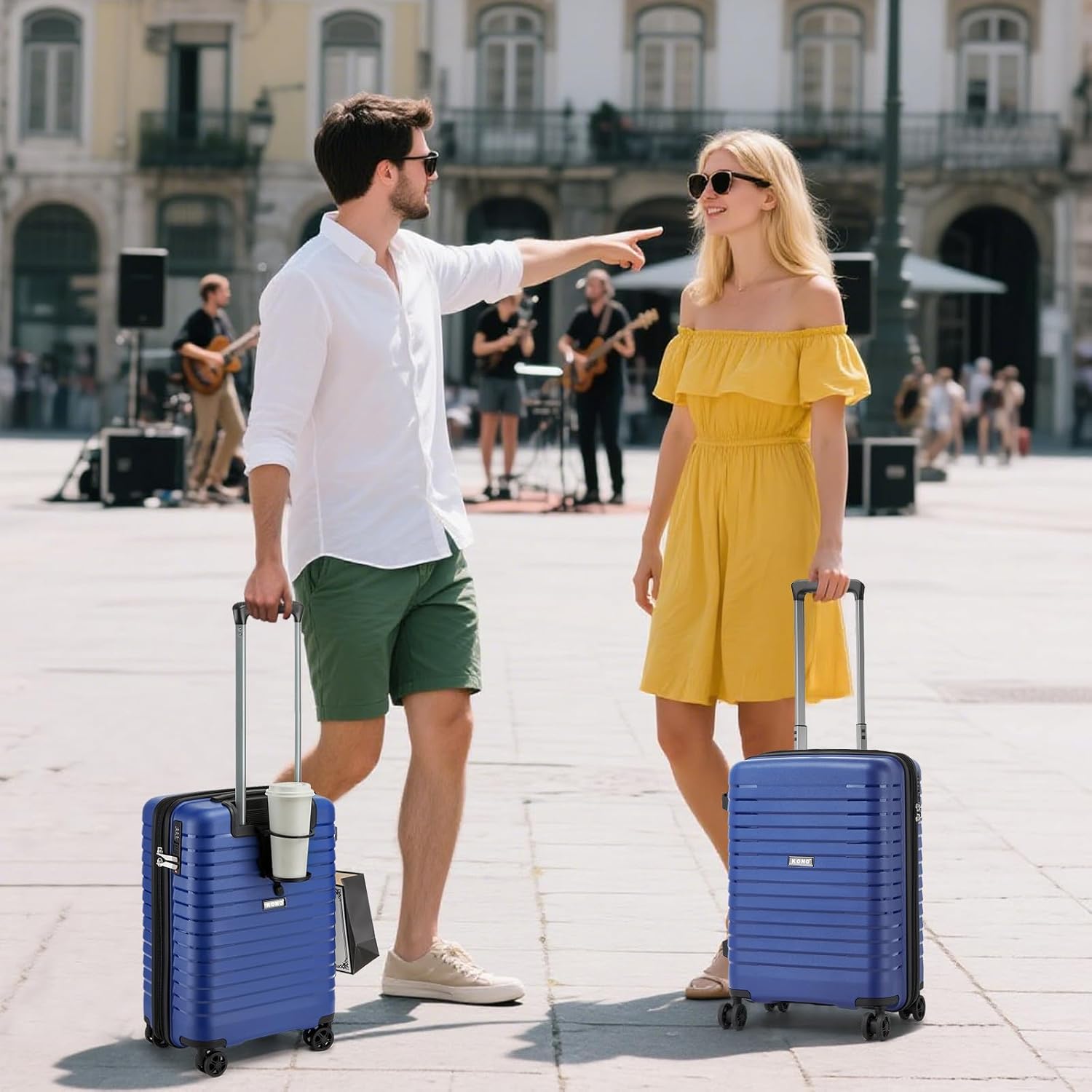 - TSA-Approved Luggage with Cup Holder: Features a TSA-accepted lock for reliable security during travel(Only authorized security personnel can open your case for inspection, preventing forced entry). Hidden cup holder design to securely hold drinks or an umbrella – a practical feature you can use when needed.