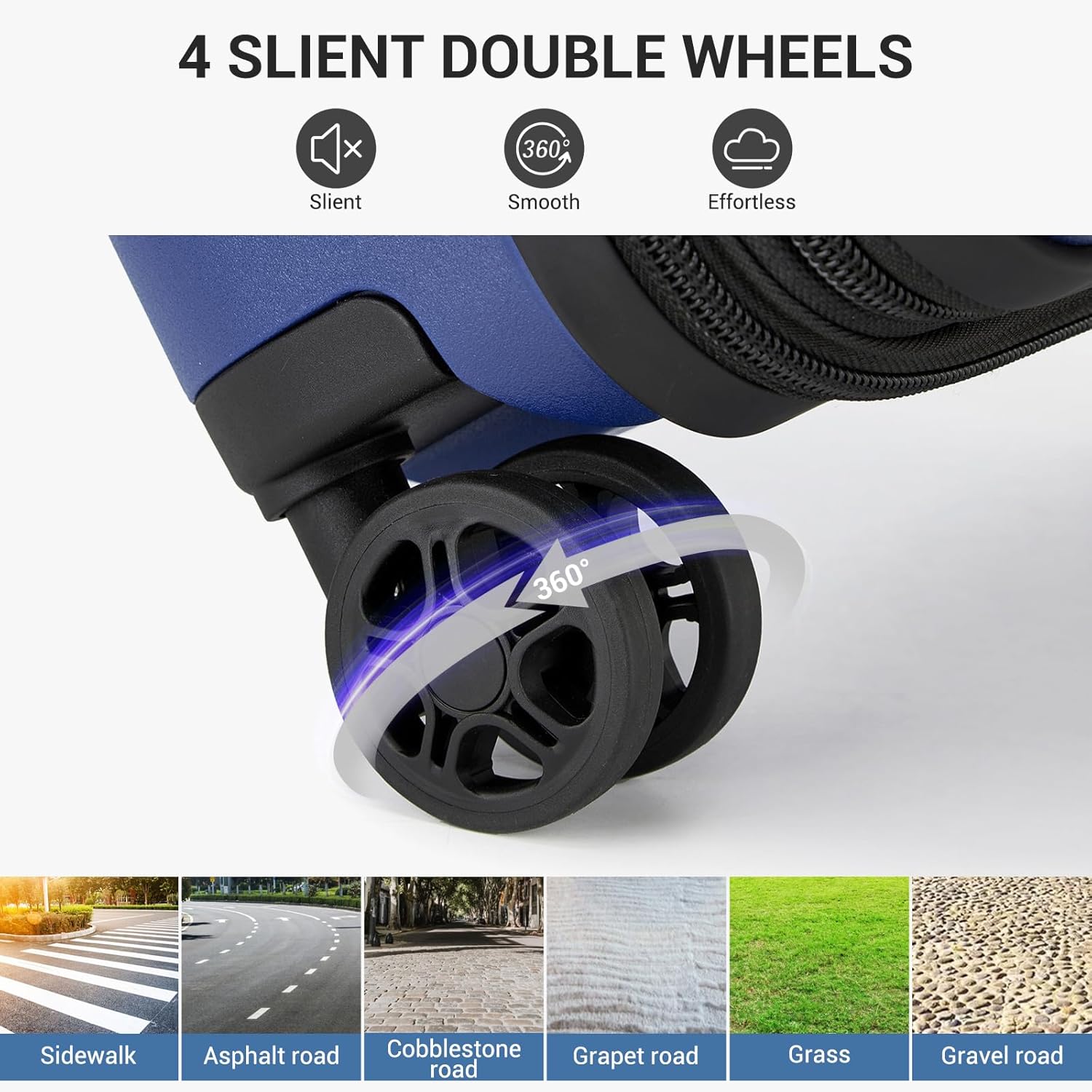 - Suitcase with Dual Spinner Wheels & Adjustable Handle: Featuring smooth multi-directional wheels and a telescoping handle for easy, effortless maneuverability through airports, train stations, and urban streets, helping reduce travel fatigue.