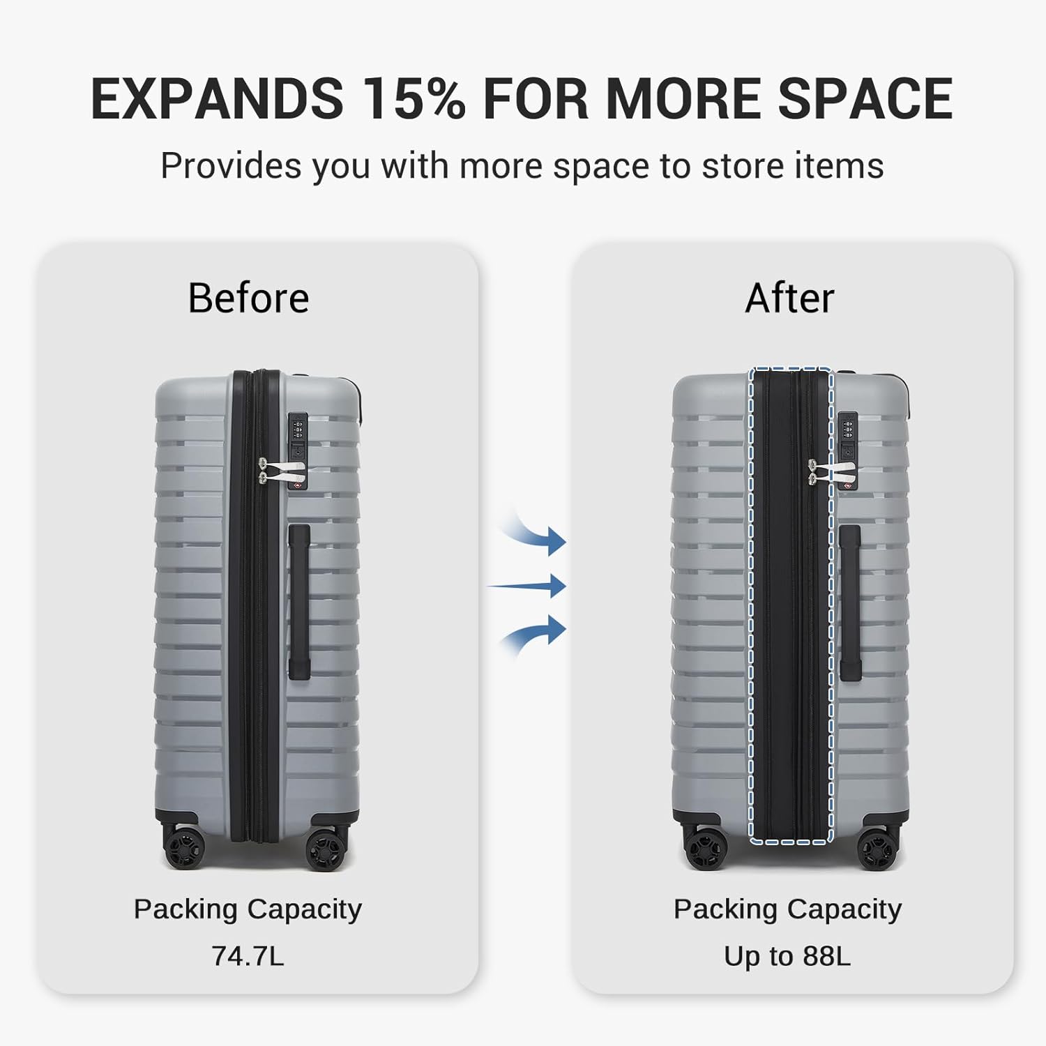 - Expandable Checked Luggage: Overall dimensions 25.59 x 17.1 x 11.2 inches (including wheels), the case interior dimensions 24.4 x 16.9 x11 inches. Weight: 8.4 lbs. Capacity≈74.7 liters (expands to 88 liters). Perfect for 7-10 days trips.